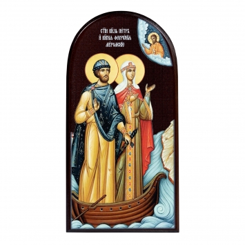 Икона на доске 11х22 объёмная печать, арочная, лак Петр и Феврония 1