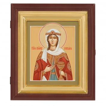 Икона живописная на доске в киоте 18х24 темпера, золоченый нимб, ковчег, киот №1 Варвара, 05429