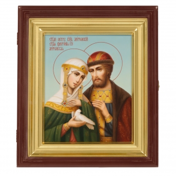 Икона живописная на доске в киоте 18х24 масло, киот №1 Петр и Феврония, 05502