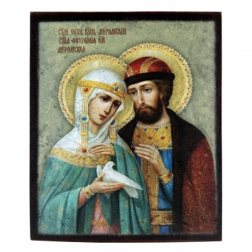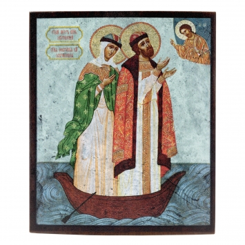 Икона на дереве 9х11 лак Петр и Феврония 3