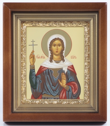 Икона в киоте 11х13 сложный, темпера, рамка золочёная Вера