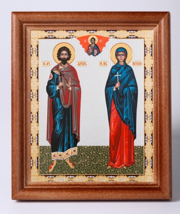 Икона в деревянной рамке №1 11х13 двойное тиснение Адриан и Наталия 2