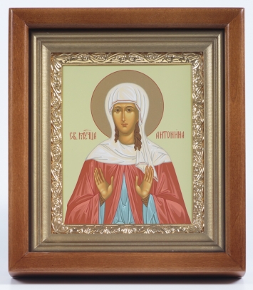 Икона в киоте 11х13 сложный, темпера, рамка золочёная Антонина