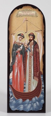 Икона на МДФ 18х50 арочная, объёмная печать, лак Петр и Феврония