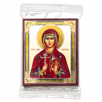 Икона на деревянном планшете 6х9 двойное тиснение, аннотация, упаковка Варвара Илиопольская, вмц. (5)