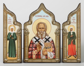 Складни деревянные 18х24 трехстворчатые, тиснение, арочные, фигурные, в упаковке Лука Войно-Ясенец. - Матрона -Ксения Петербургская