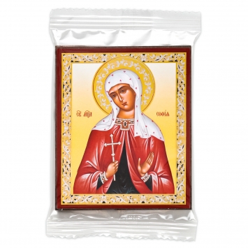 Икона на деревянном планшете 6х9 двойное тиснение, аннотация, упаковка София (3) Римская