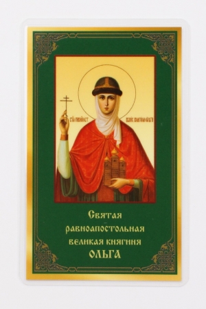 Икона в жесткой ламинации 5х8 с оборотом Ольга, св. равноап. вел. княгиня