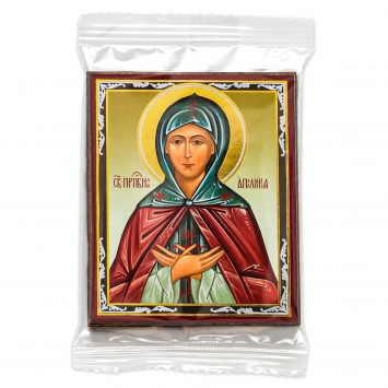 Икона на деревянном планшете 6х9 двойное тиснение, аннотация, упаковка Аполлинария прп.