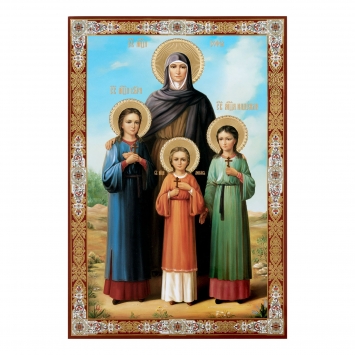 Икона на оргалите №1 18х24 двойное тиснение Вера Надежда Любовь 7