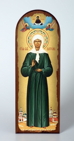 Икона на дереве 18х50 арочная, канвас, упаковка Матрона Московская (ростовая) с житием