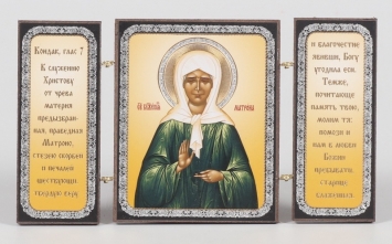 Складни деревянные 7х12 трехстворчатые, двойное тиснение Матрона Московская (с венчиком)