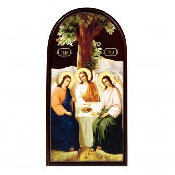 Икона на доске 11х22 объёмная печать, арочная, лак Троица 1