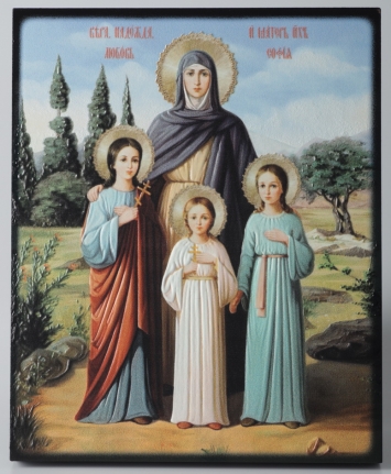 Икона на доске 13х15 объёмная печать, лак Вера.Надежда.Любовь и мать их София