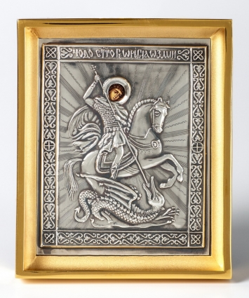 Икона настольная №128 с г / пластической вставкой / фото / золочение, серебрение / Чудо Георгия о змие