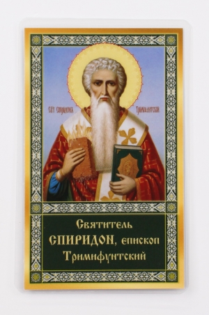 Икона в жесткой ламинации 5х8 с оборотом Спиридон Тримифунтский (пояс.)