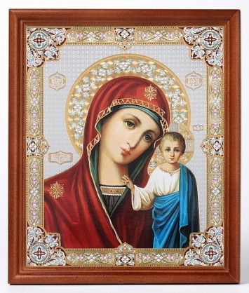 Икона в деревянной рамке №1 18х24 двойное тиснение Казанская БМ 14