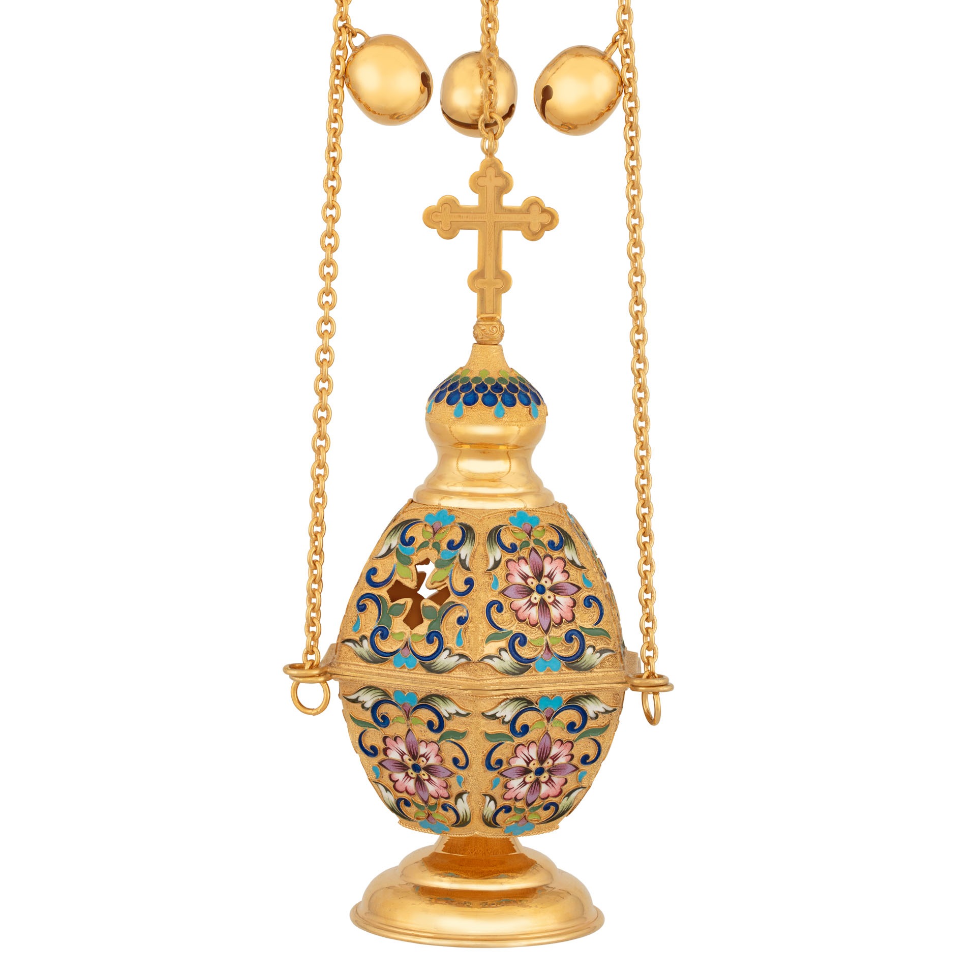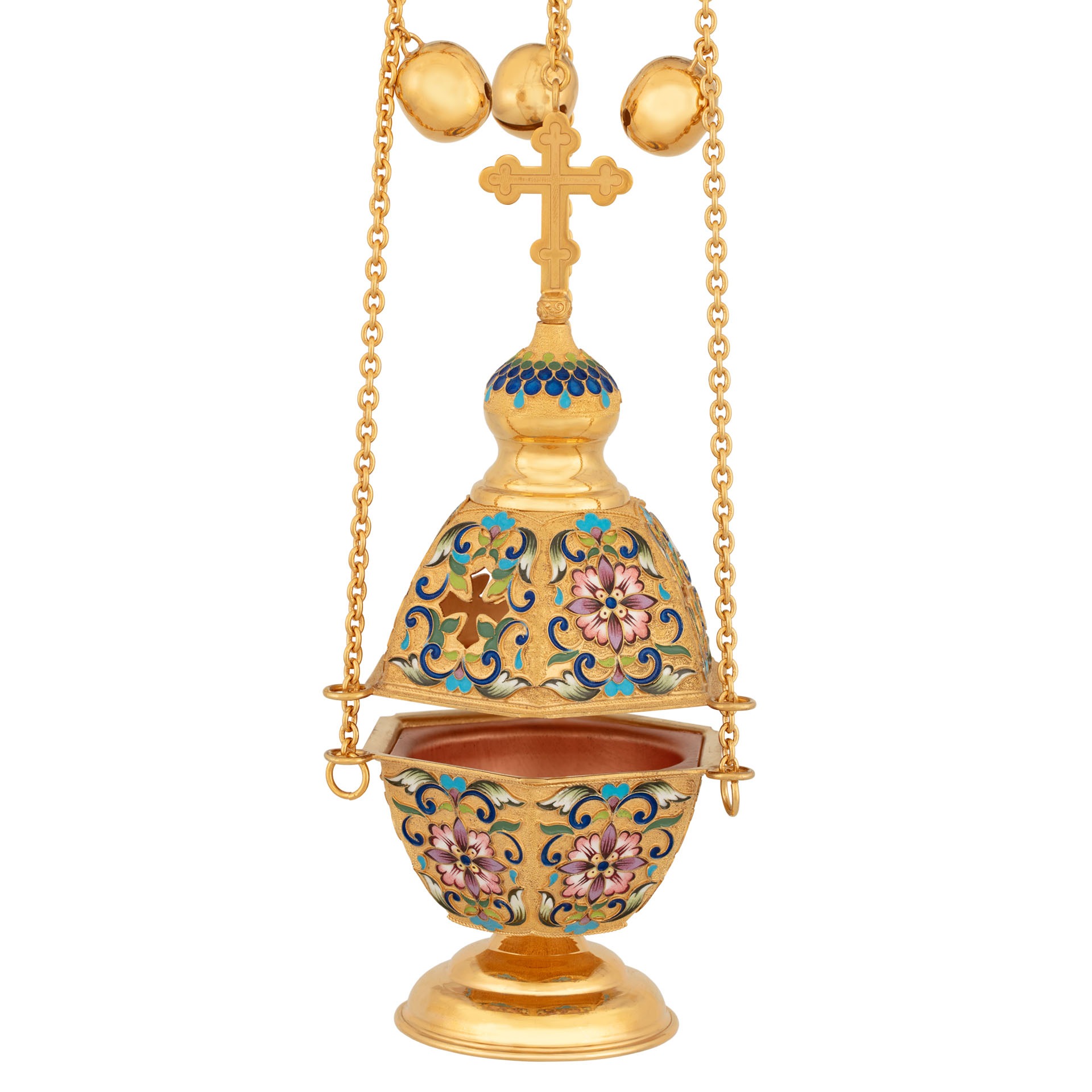 Кадило 6-ти гранное филигрань, эмаль, роспись / золочение / серебро (УИН)
