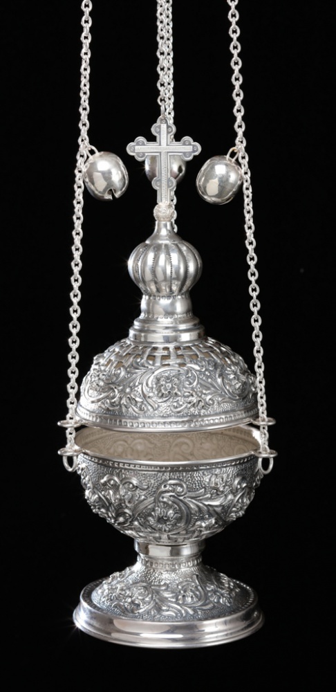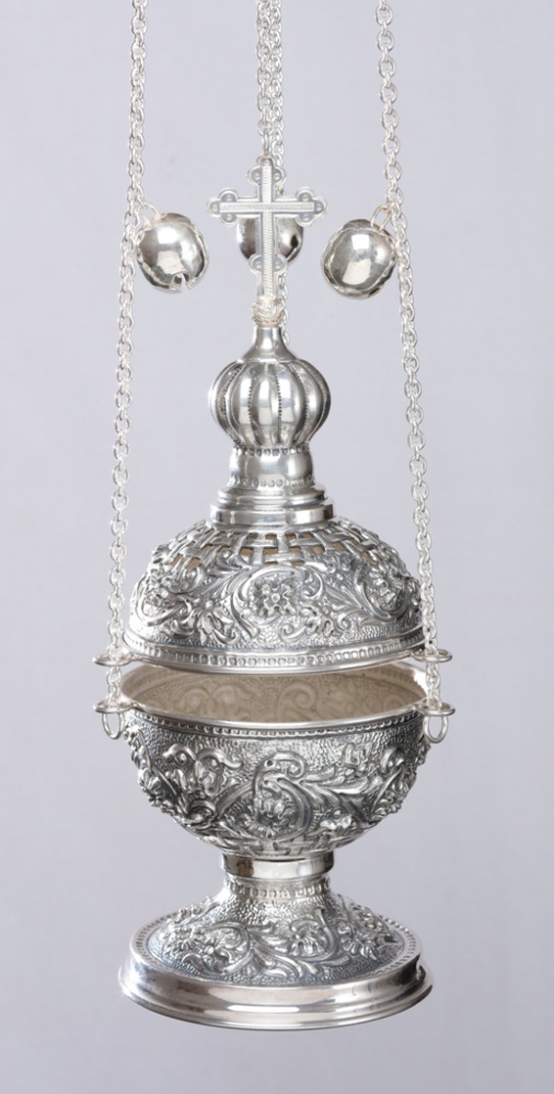 Кадило круглое №2 чеканка, выпильное серебро (УИН)