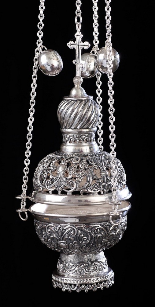 Кадило круглое №6 чеканка, выпильное серебро (УИН)