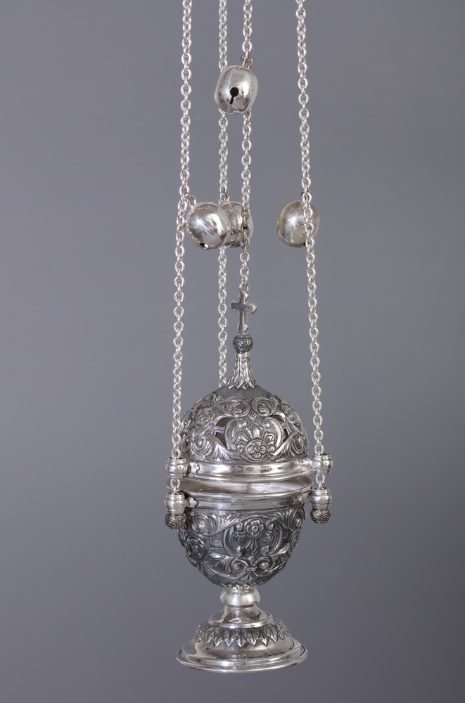 Кадило круглое №9 чеканка, выпильное серебро (УИН)