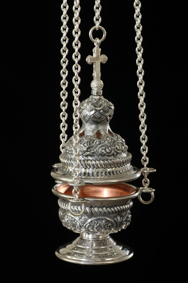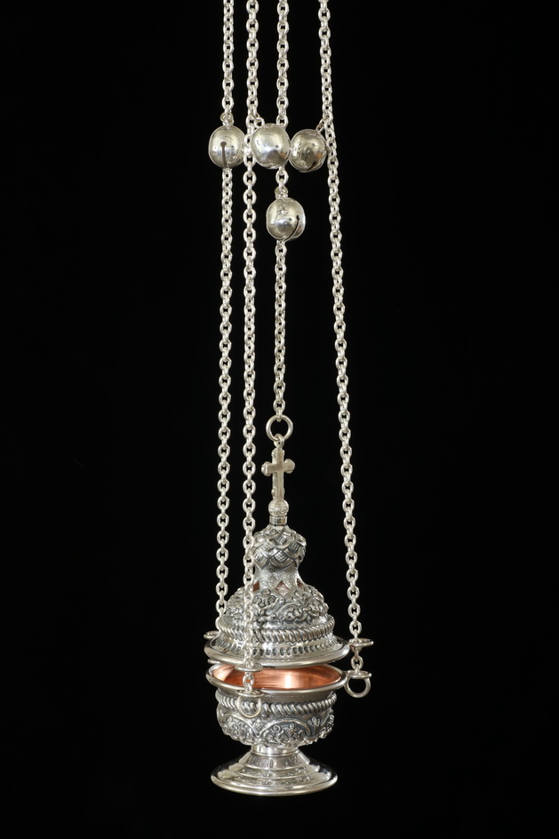 Кадило круглое малое №7 чеканное, выпильное серебро (УИН)