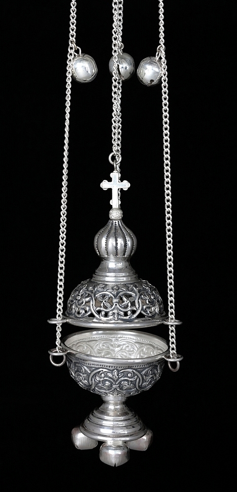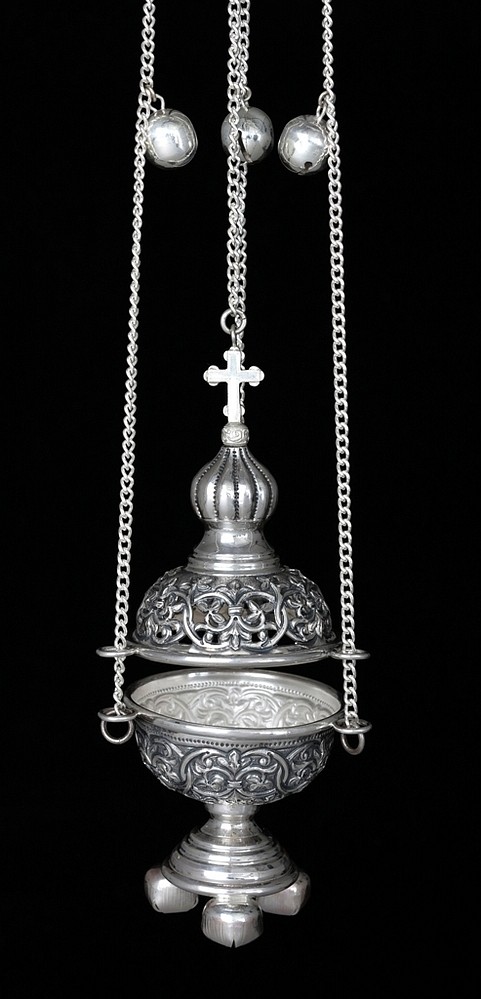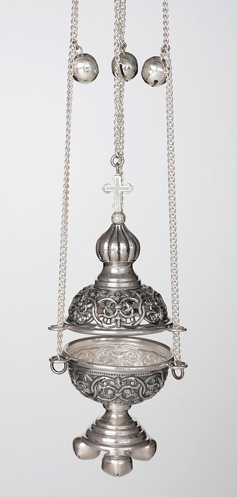 Кадило круглое малое требное №2 чеканное, выпильное серебро (УИН)