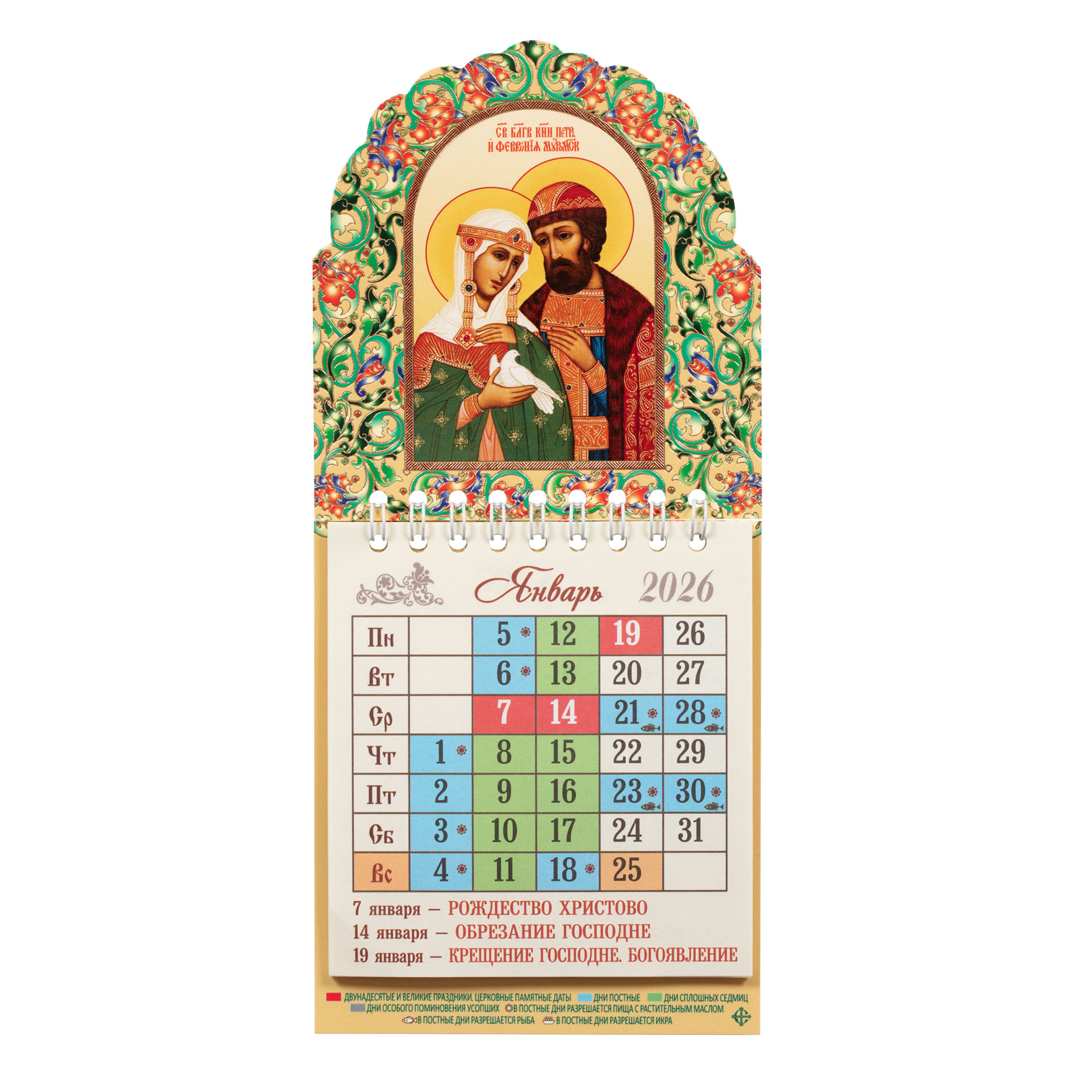 Календарь церковный фигурный 9,5*21 на магните 2026 г. Петр и Феврония