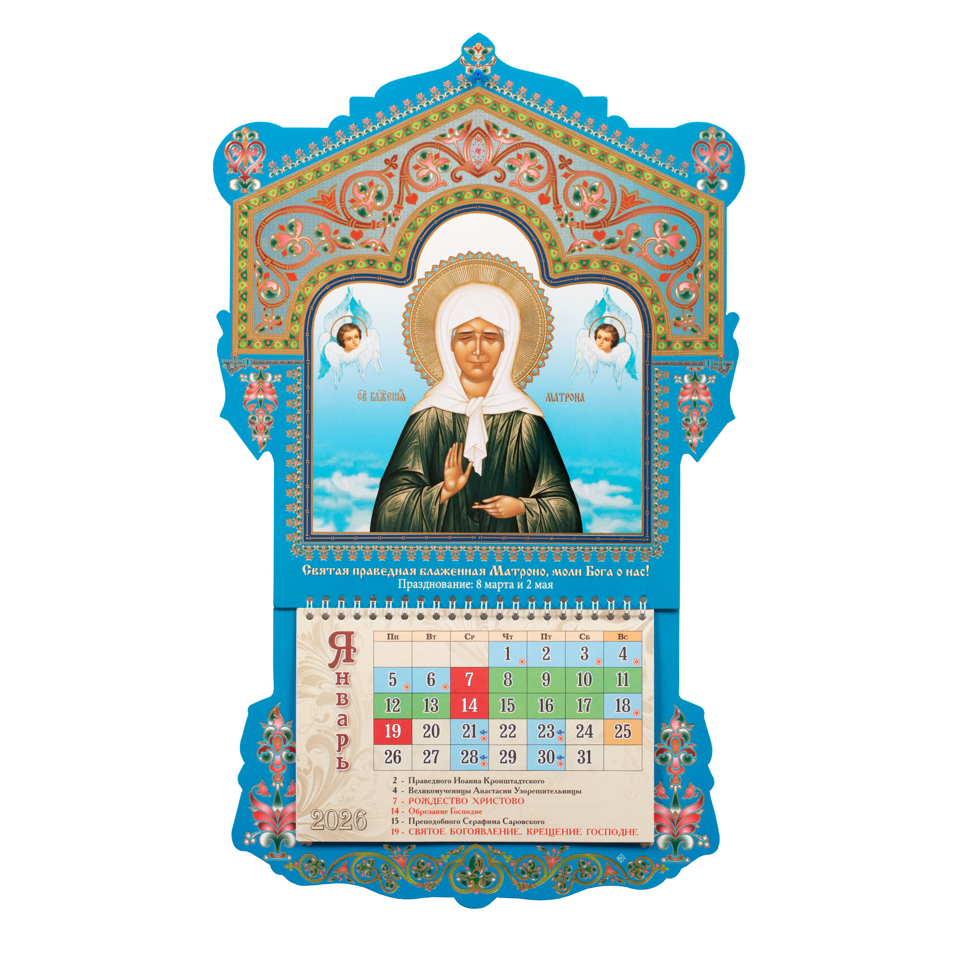 Календарь церковный настенный 12-ти листный фигурный 2026 г.с / ф Матрона
