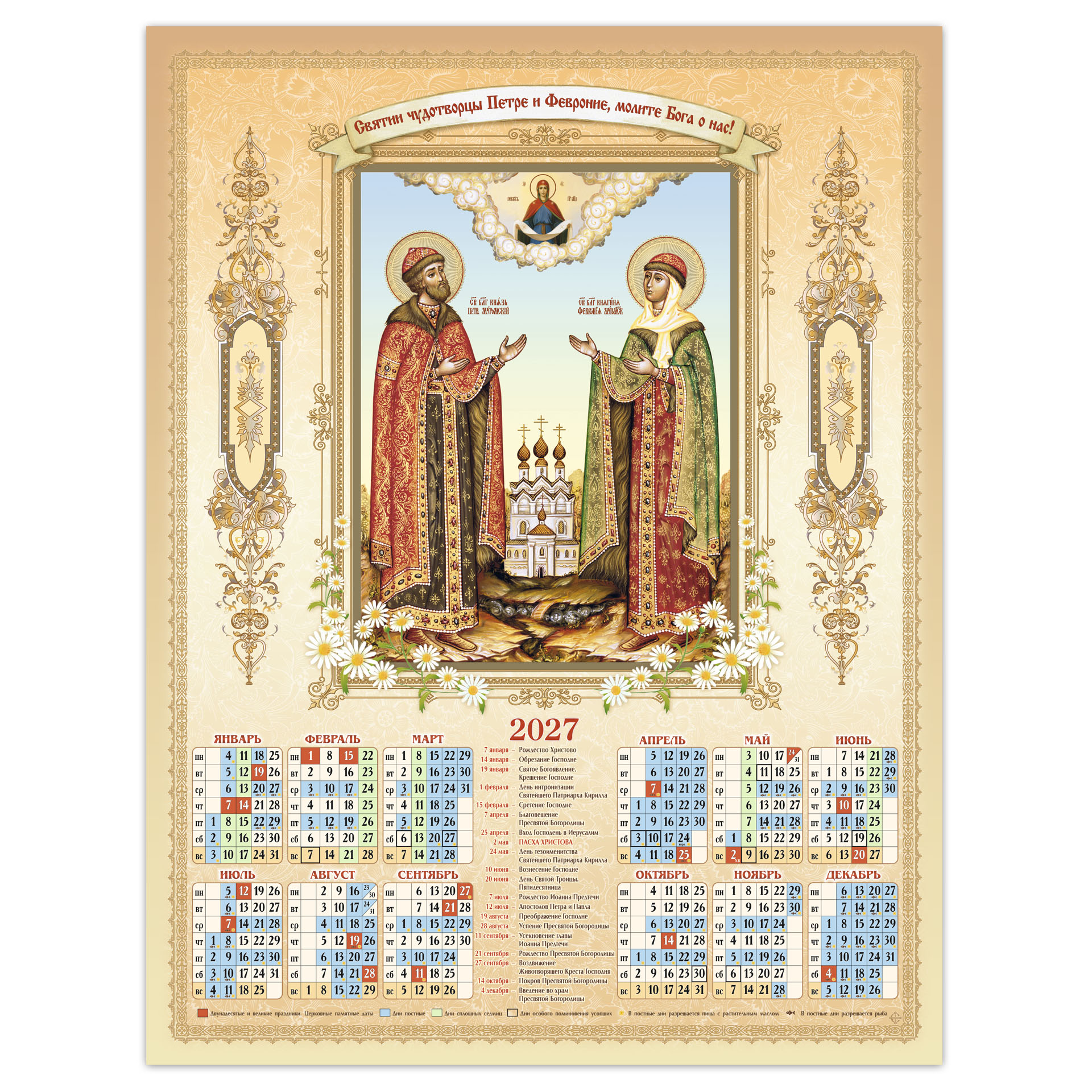 Календарь церковный настенный А2 пленка 2027 г. Петр и Феврония