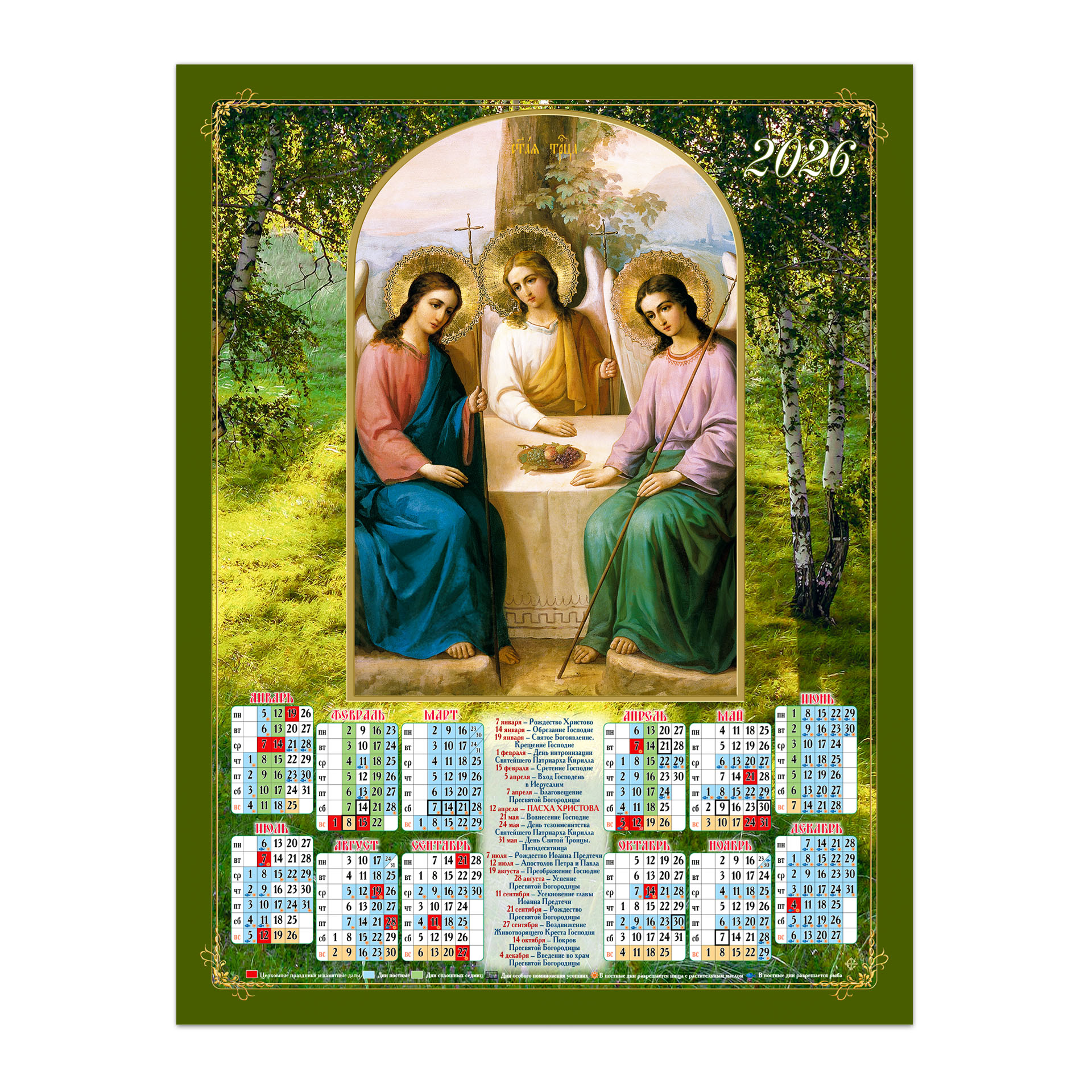 Календарь церковный настенный А3 пленка 2026 г. Троица на фоне берез