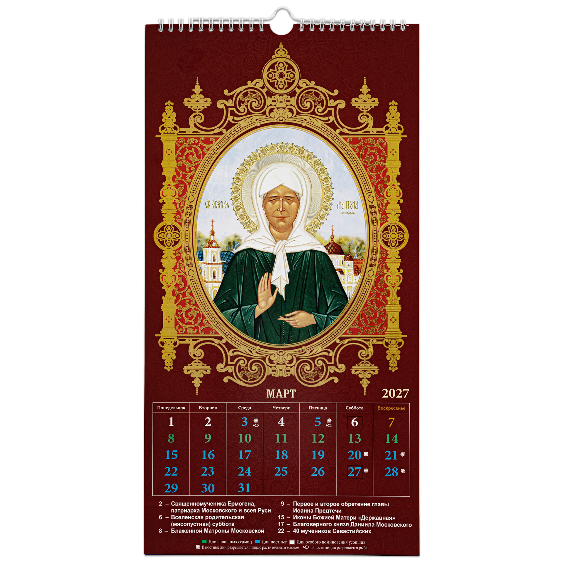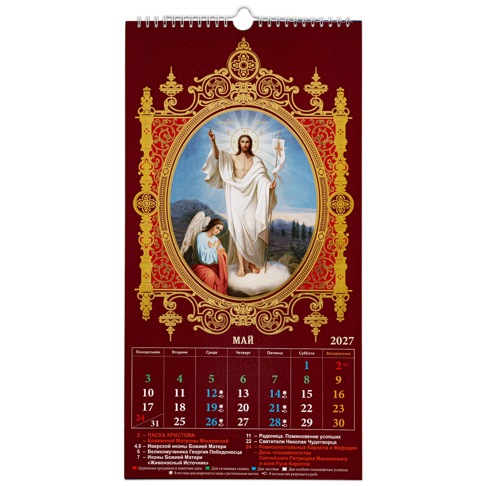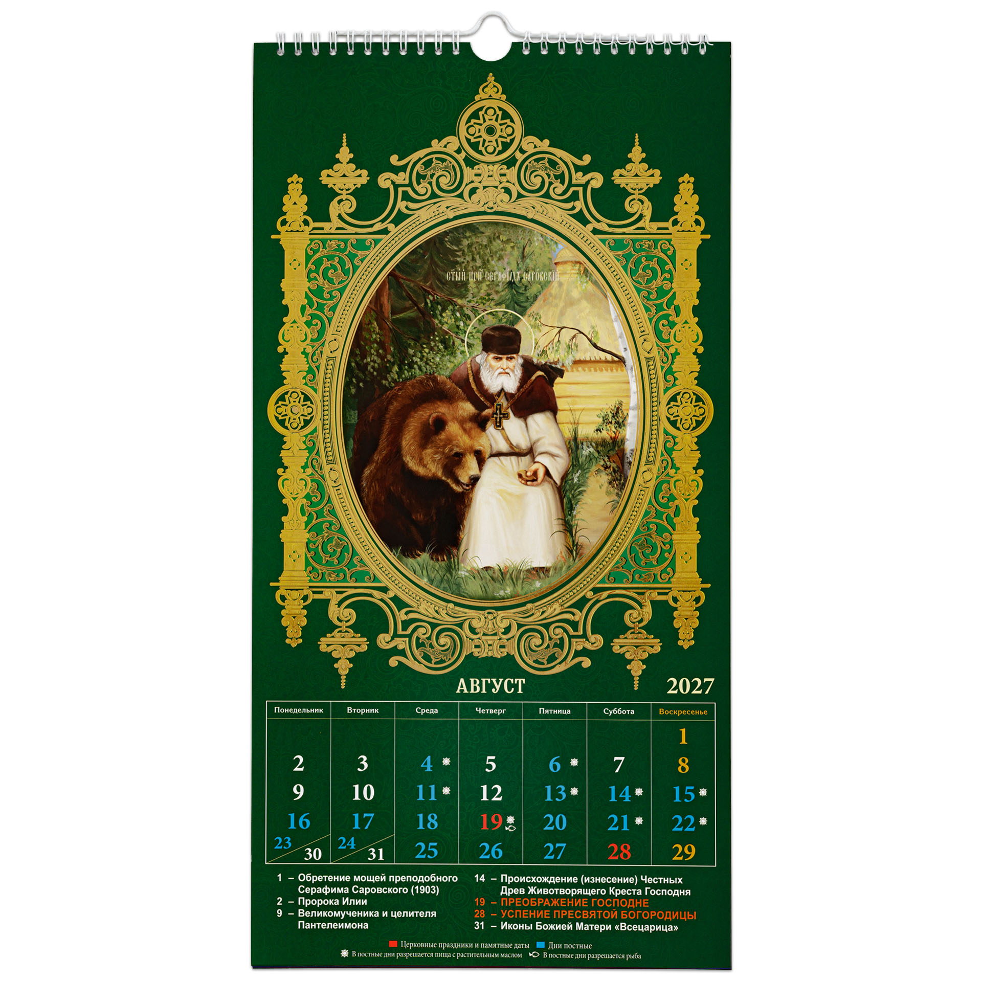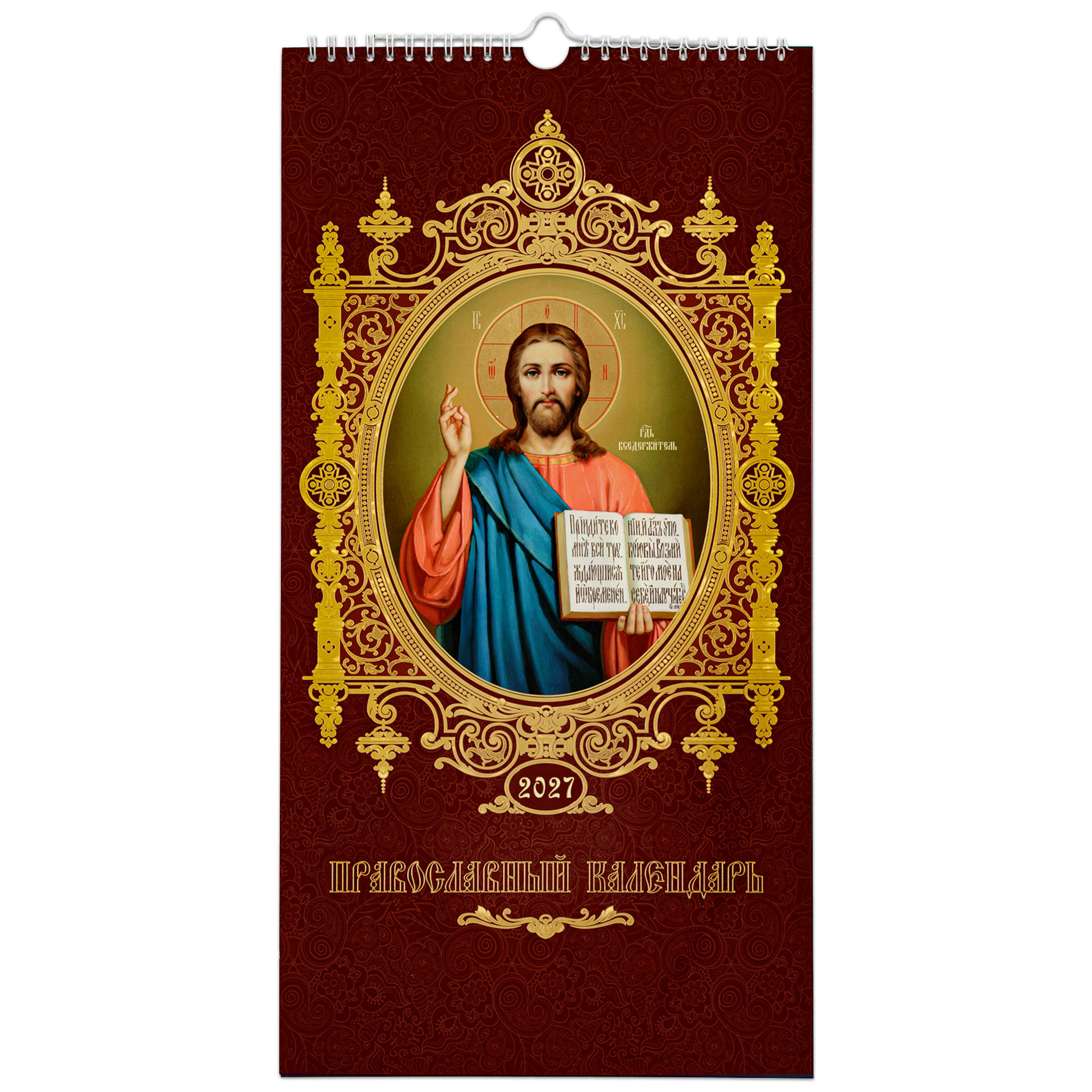 Календарь церковный настенный перекидной А3 (14-лист) тиснение 2027 Спаситель