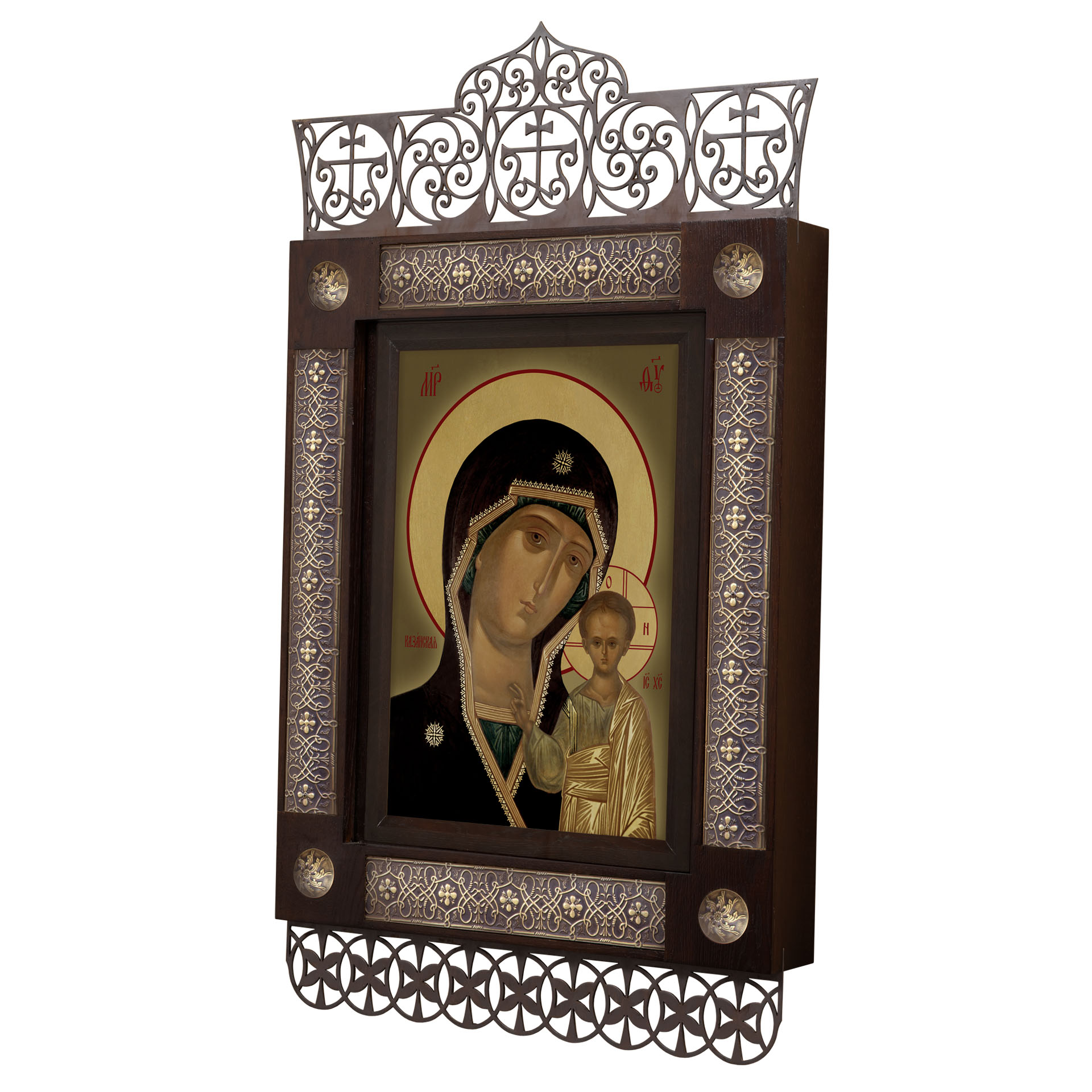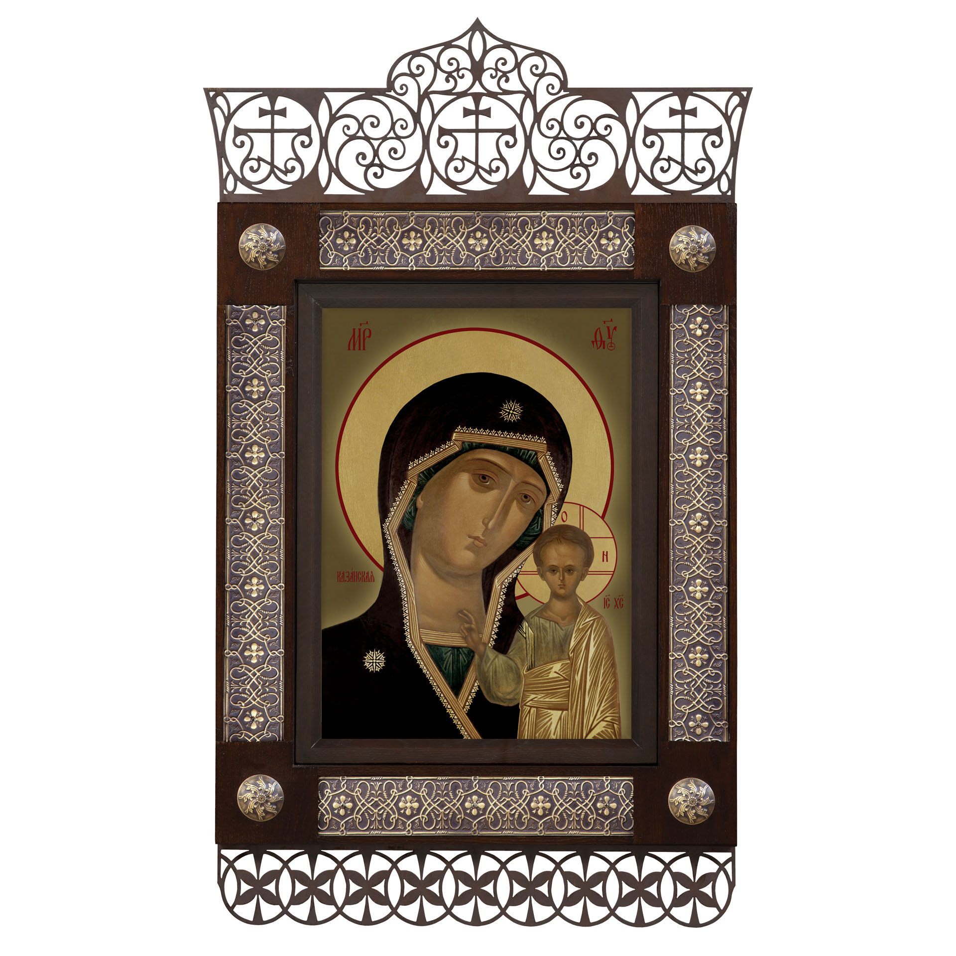 Размер киота без навершия и украшения снизу - 740х600 мм. Размер иконы - 550х420 мм.