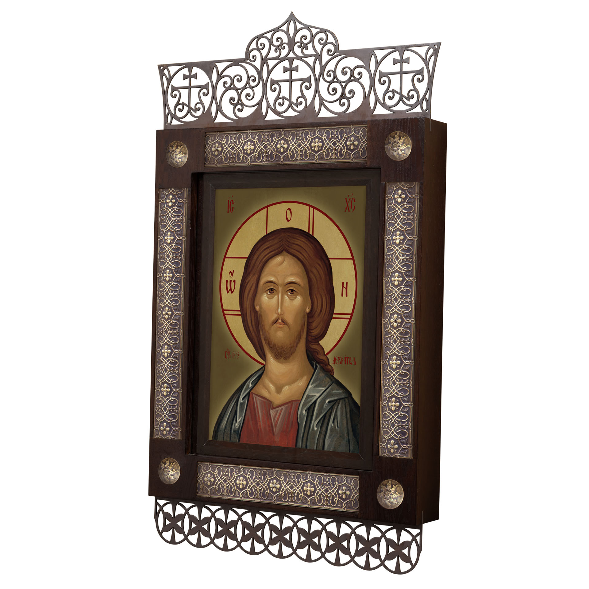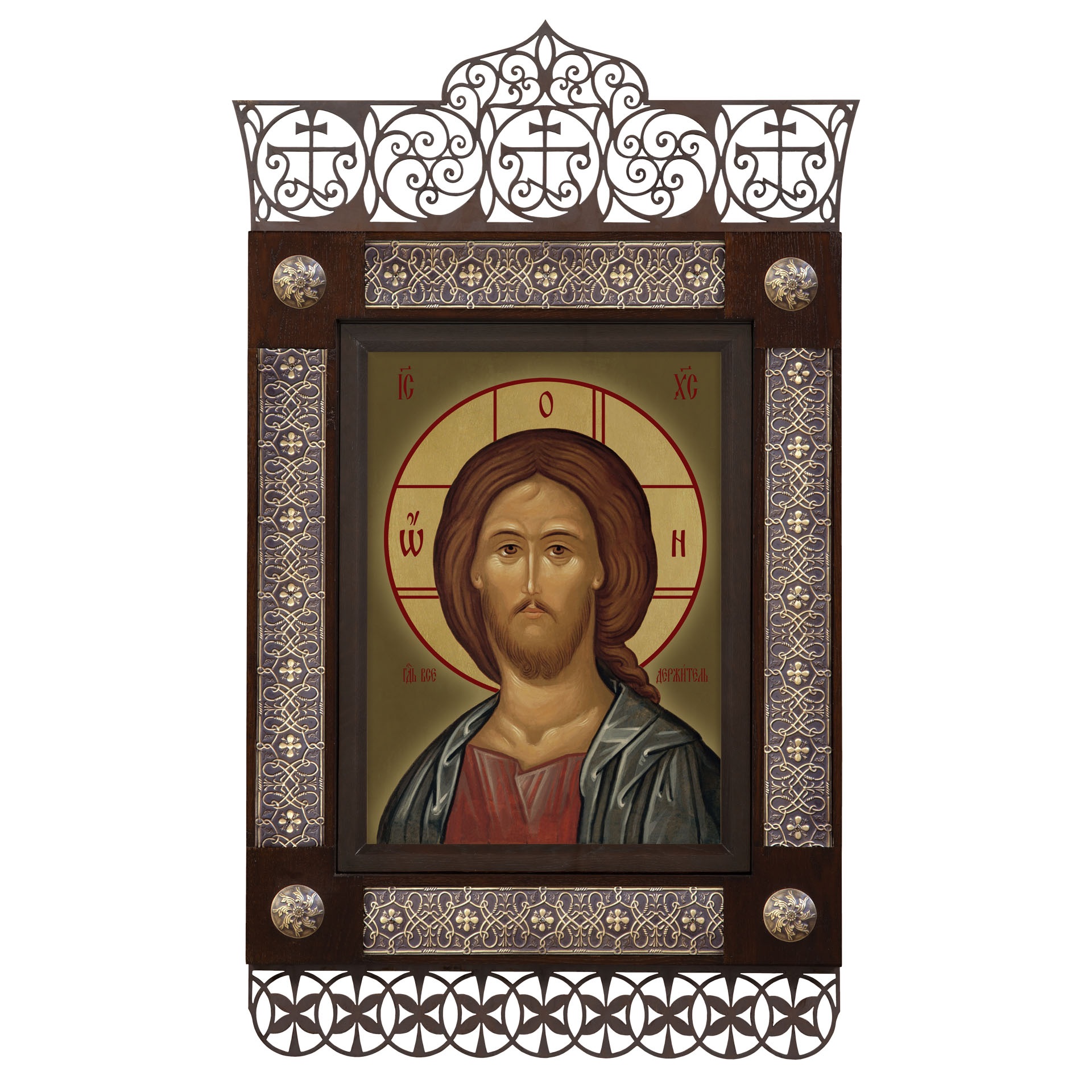 Размер киота без навершия и украшения снизу - 740х600 мм. Размер иконы - 550х420 мм.