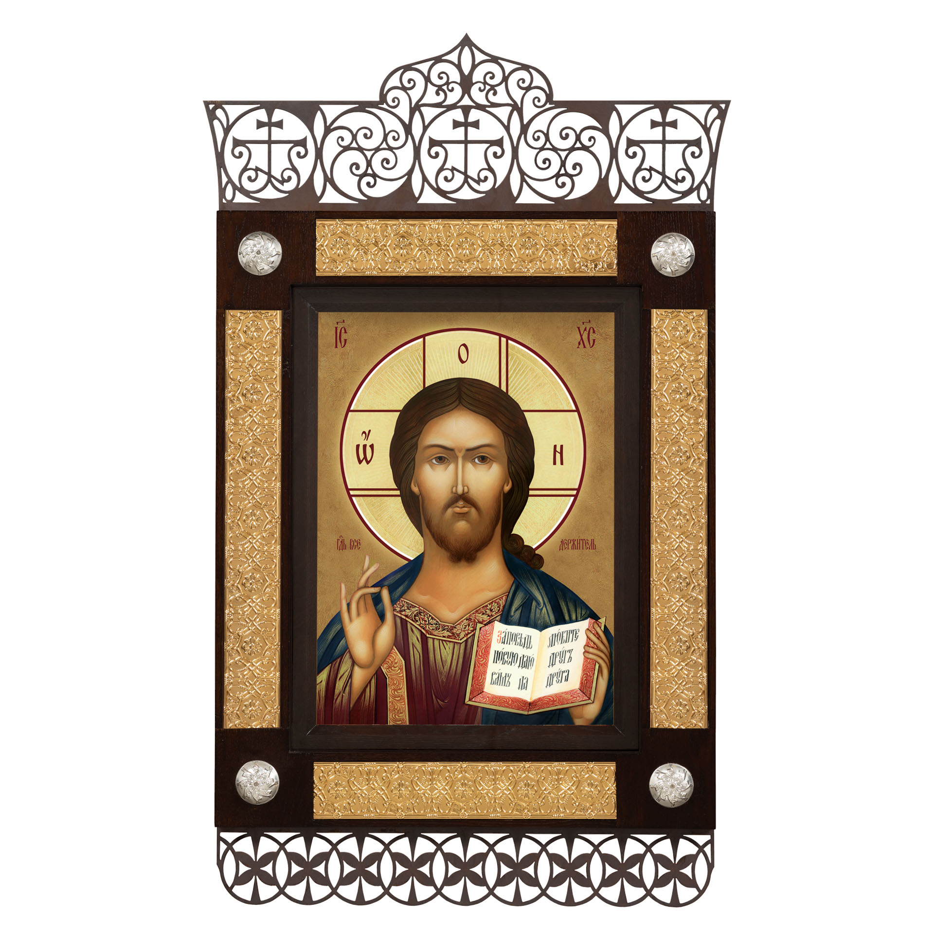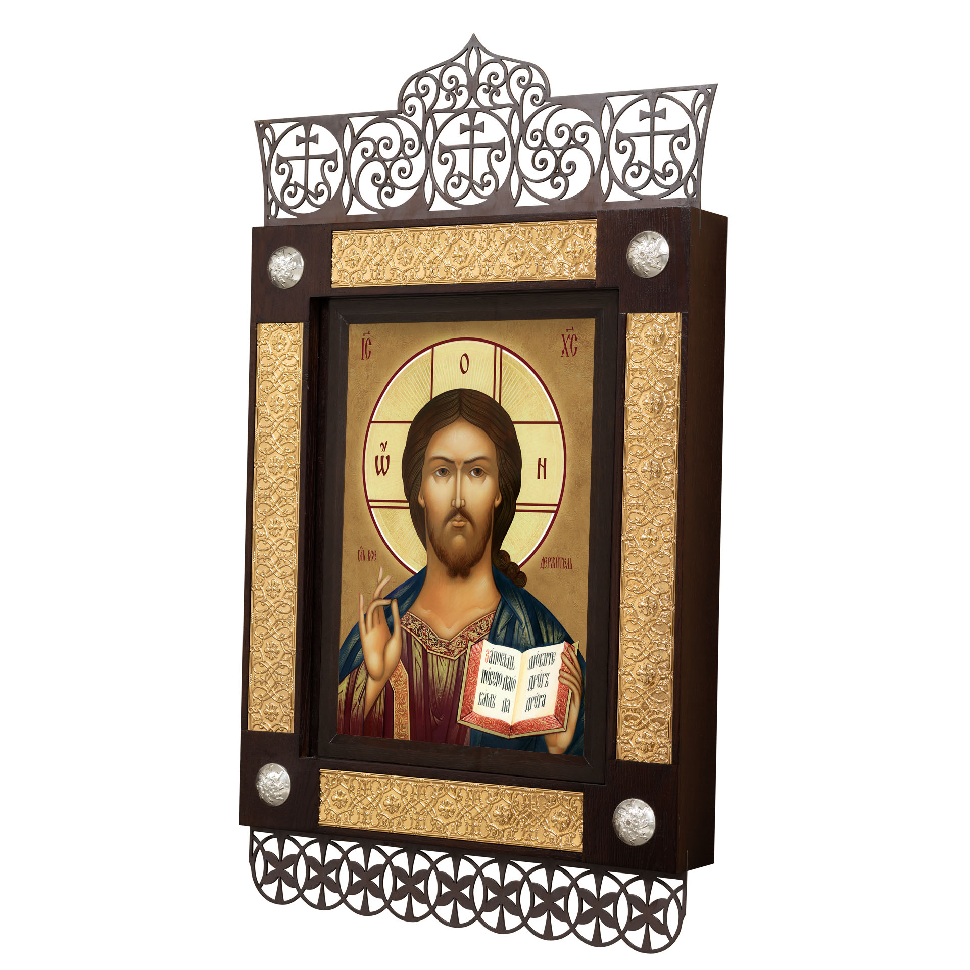 Размер киота без навершия и украшения снизу - 740х600 мм. Размер иконы - 550х420 мм.