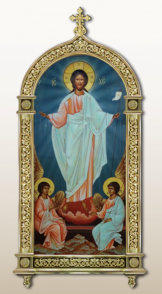 Резьба- сусальное золочение. Икона- печать на стекле или на пластике (зависит от раз-ра иконы ),