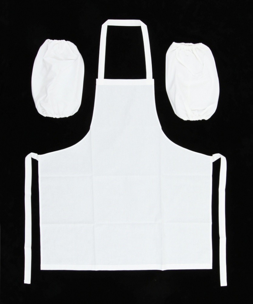 Комплект для освещения храма выполнен из льняной ткани. В комплект входит фартук и нарукавники.