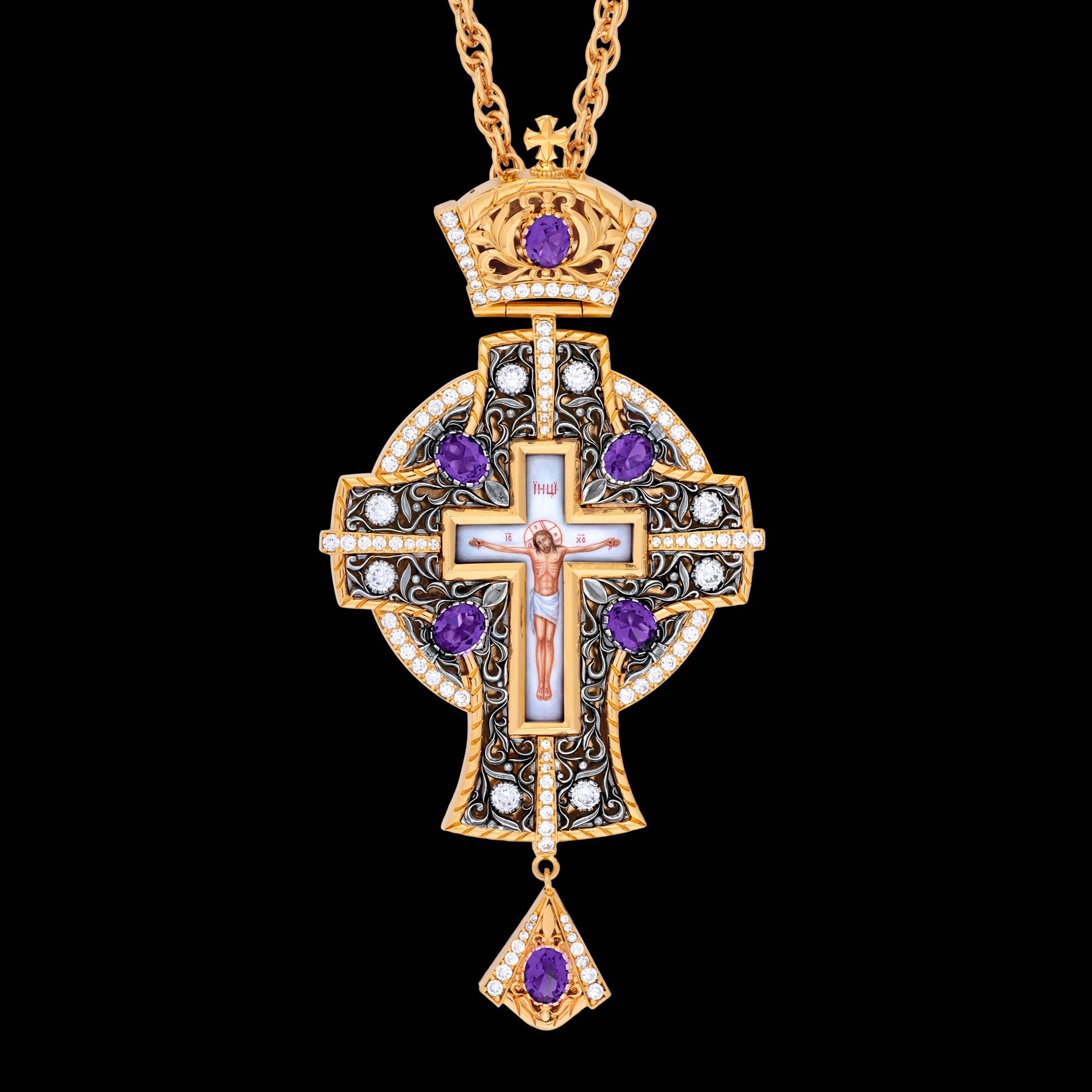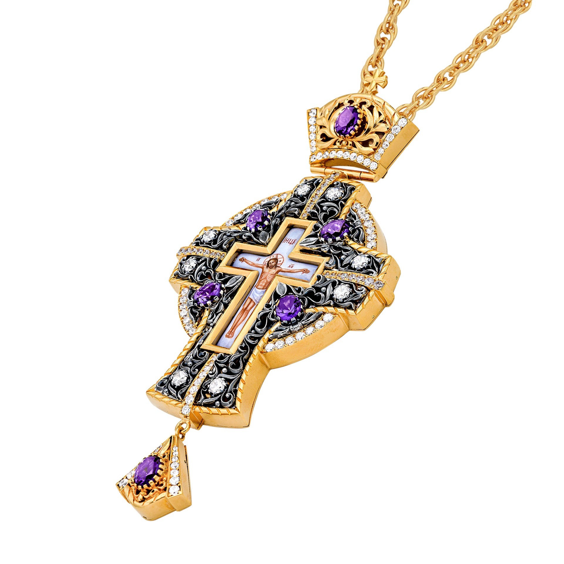 Крест архиерейский №101 / Фианиты / золочение, серебрение