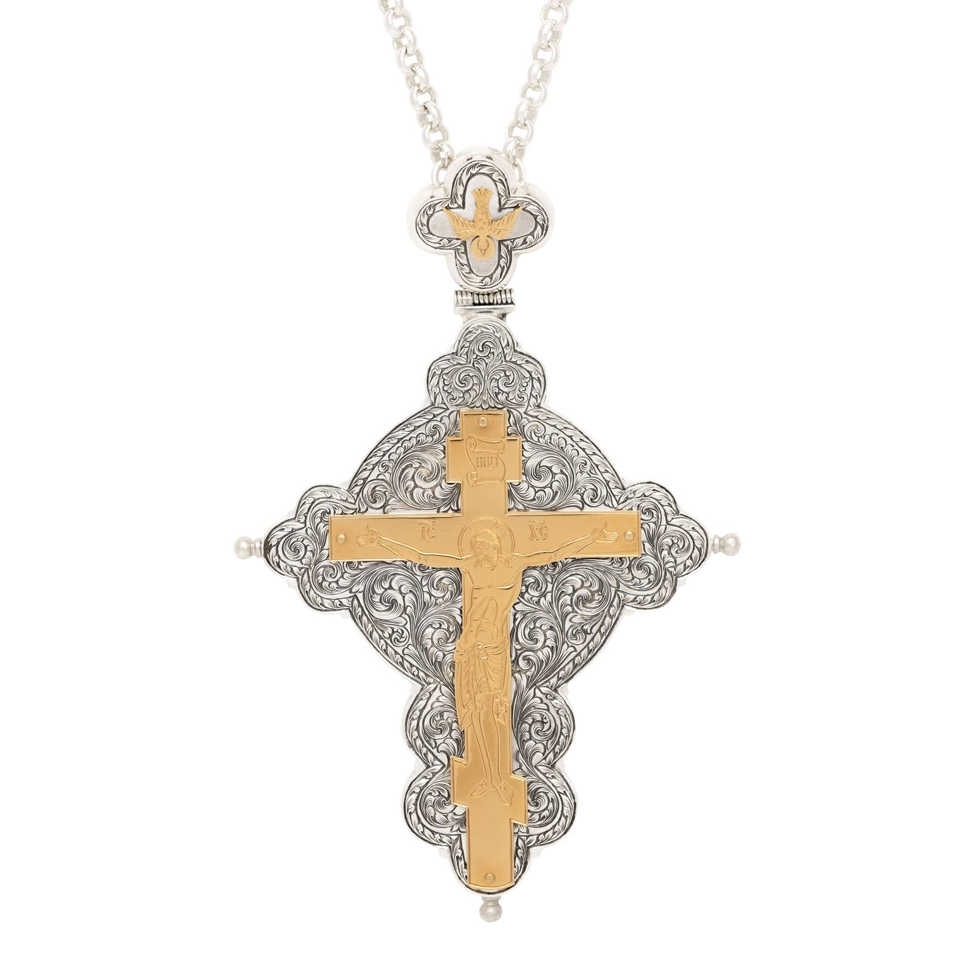 Крест архиерейский №116 мощевик гравировка / золочение / серебро (УИН)