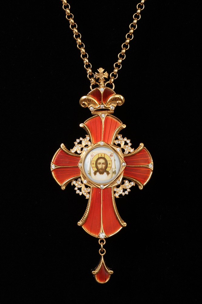 Крест архиерейский №149 / золочение / серебро эмаль, гильяш (УИН)
