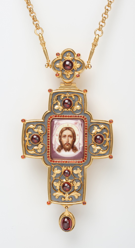 Крест архиерейский №1499 / Фианит / золочение / серебро финифть (УИН)