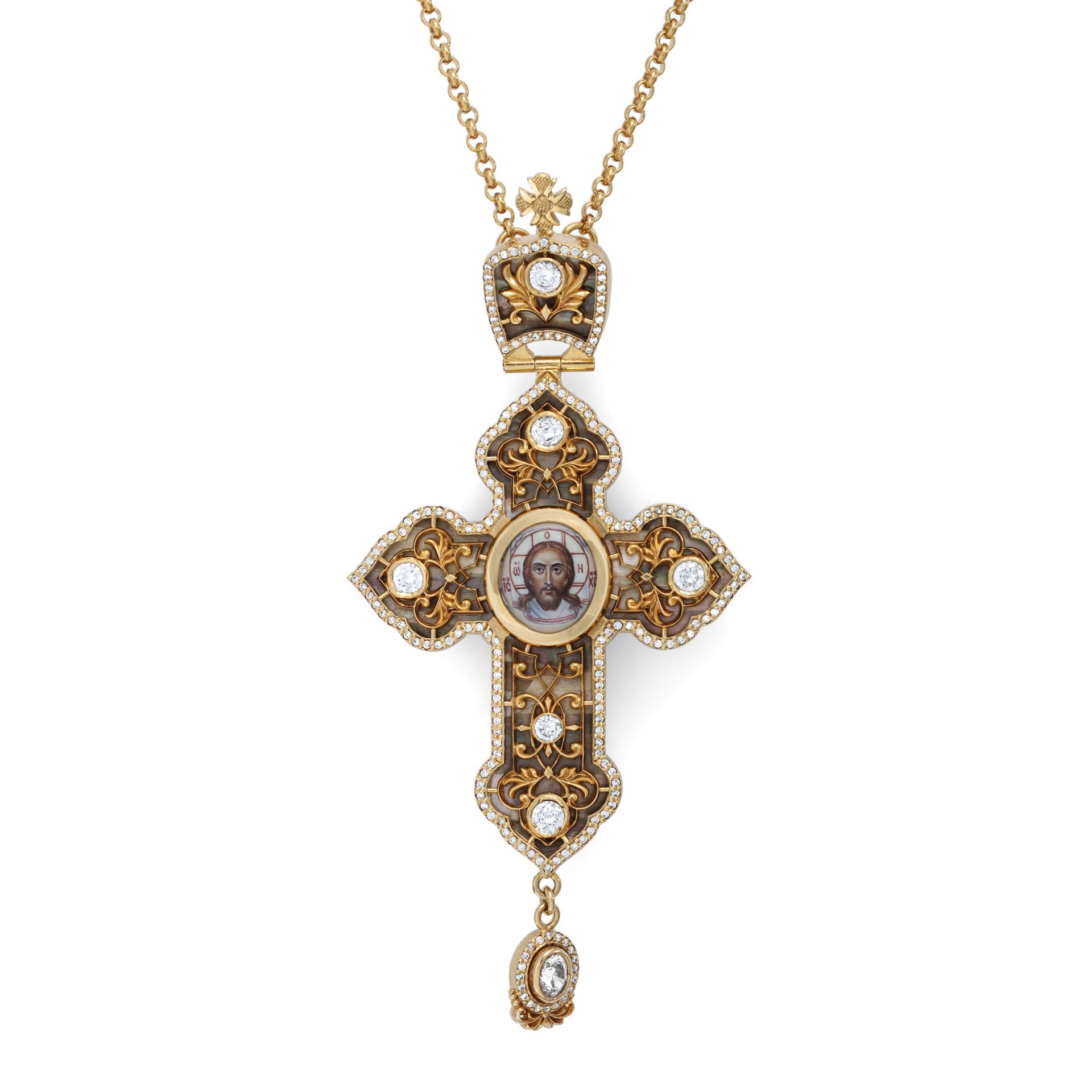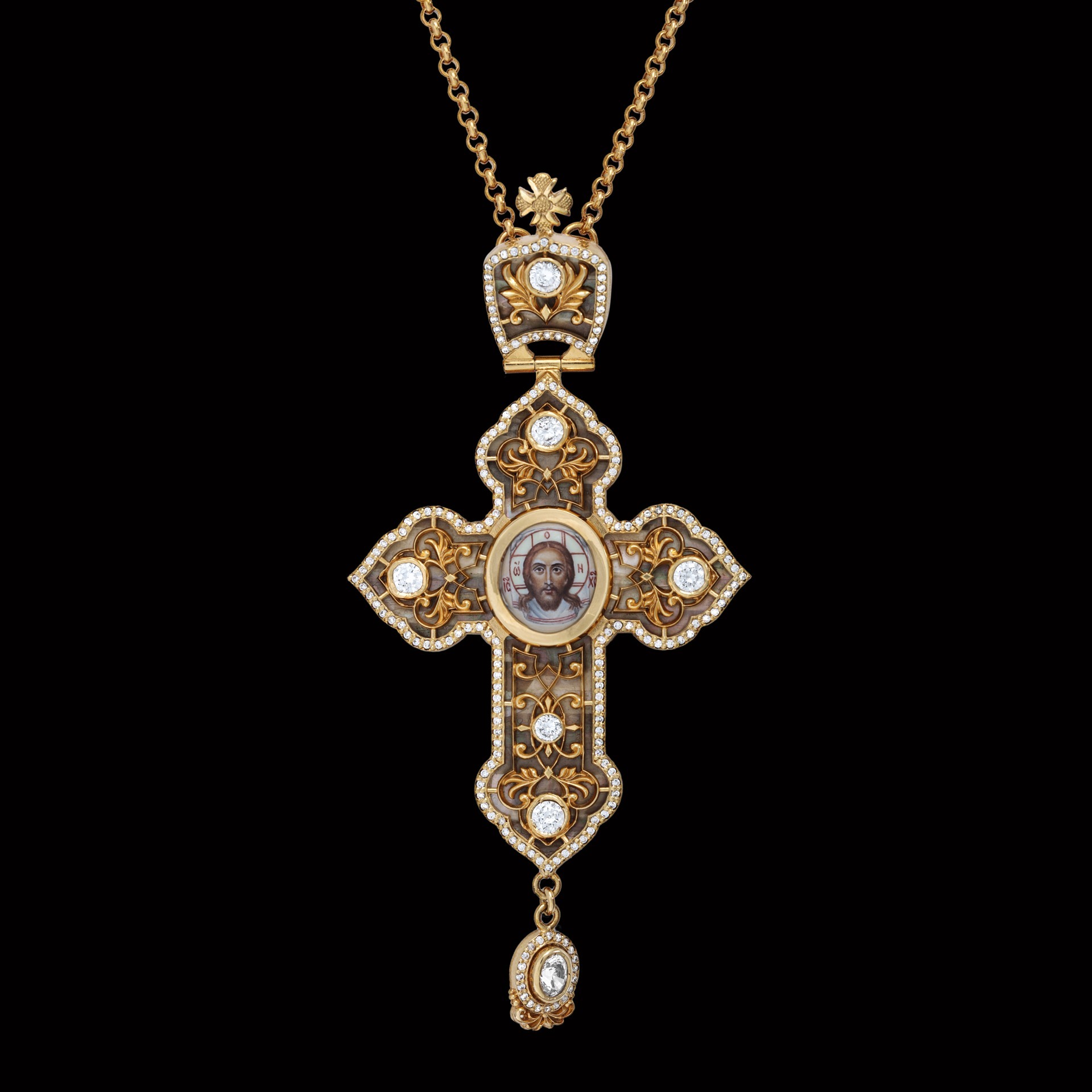 Крест архиерейский №1524 / Фианиты / перламутр / золочение