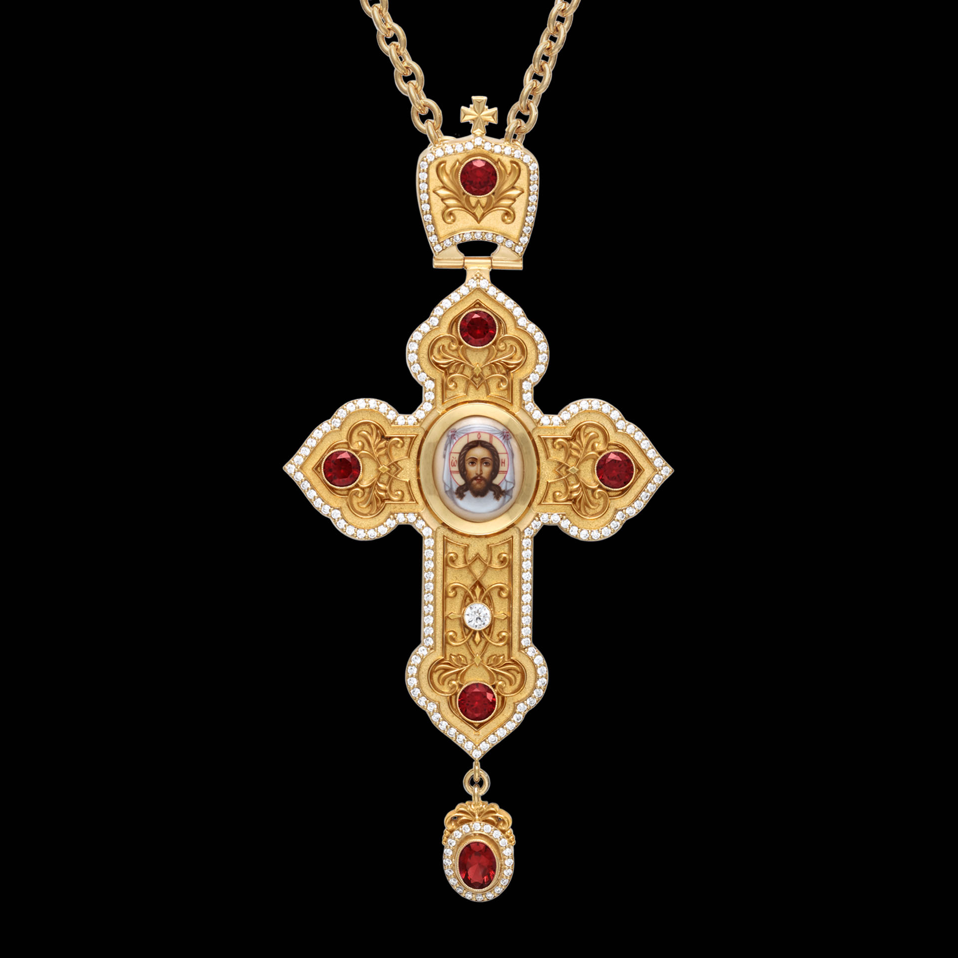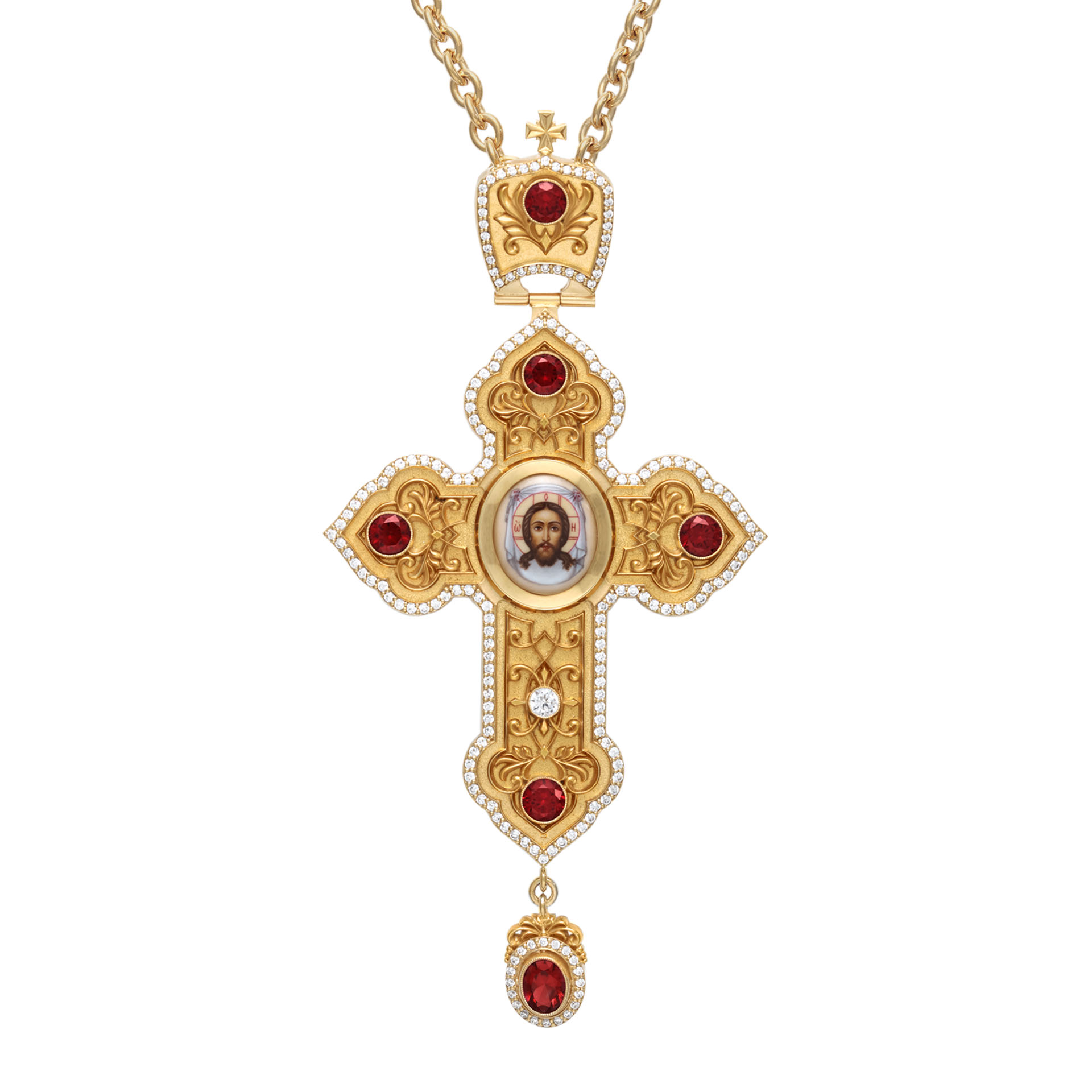 Крест архиерейский №1524 / Фианиты / золочение / серебро финифть (УИН)
