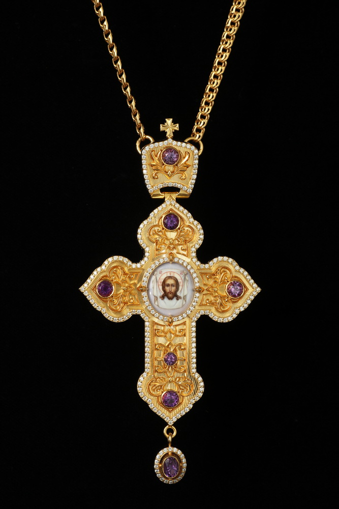 Крест архиерейский №1524 / золочение / серебро финифть, гильяш (УИН)