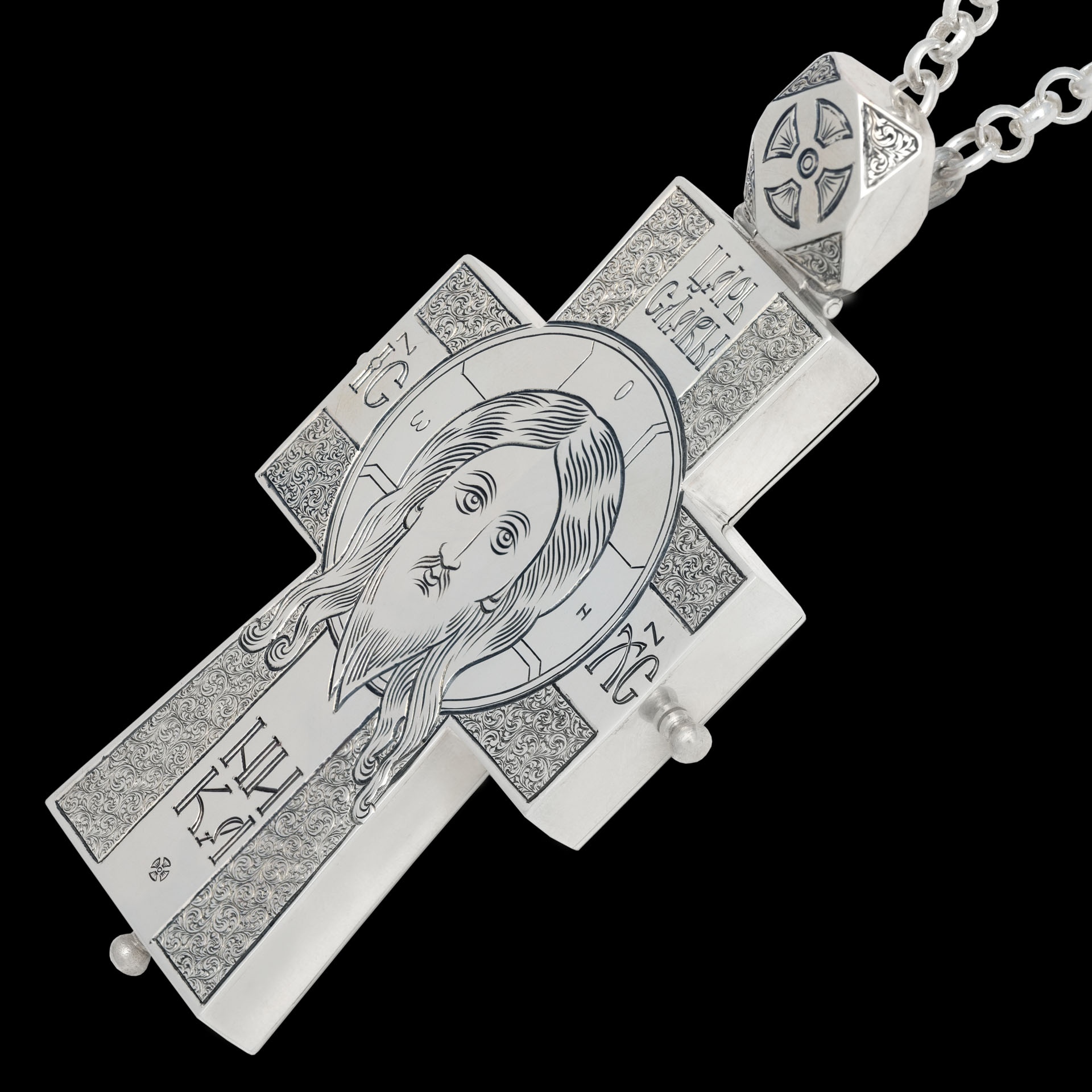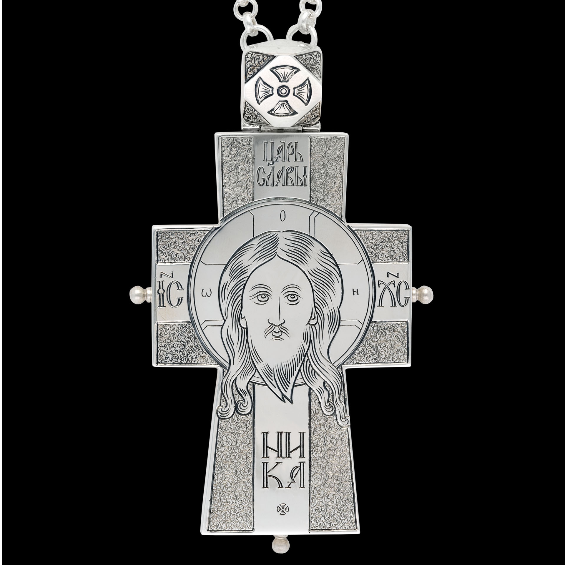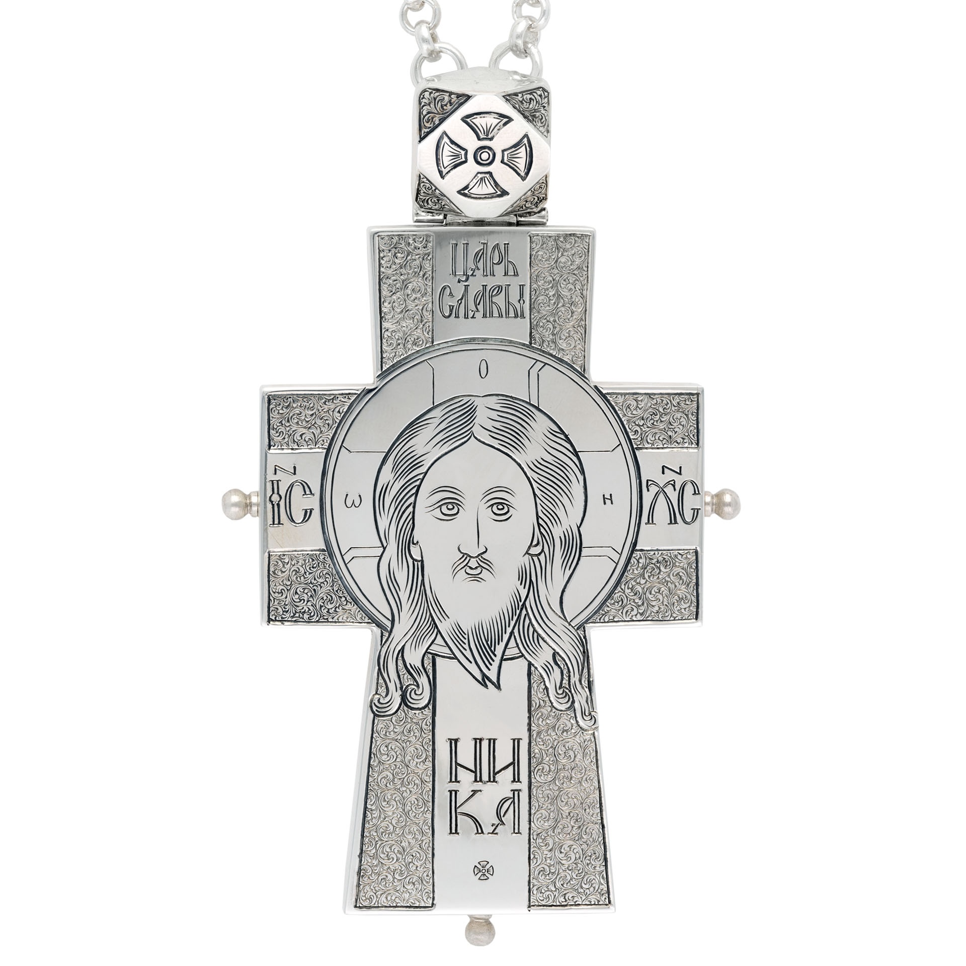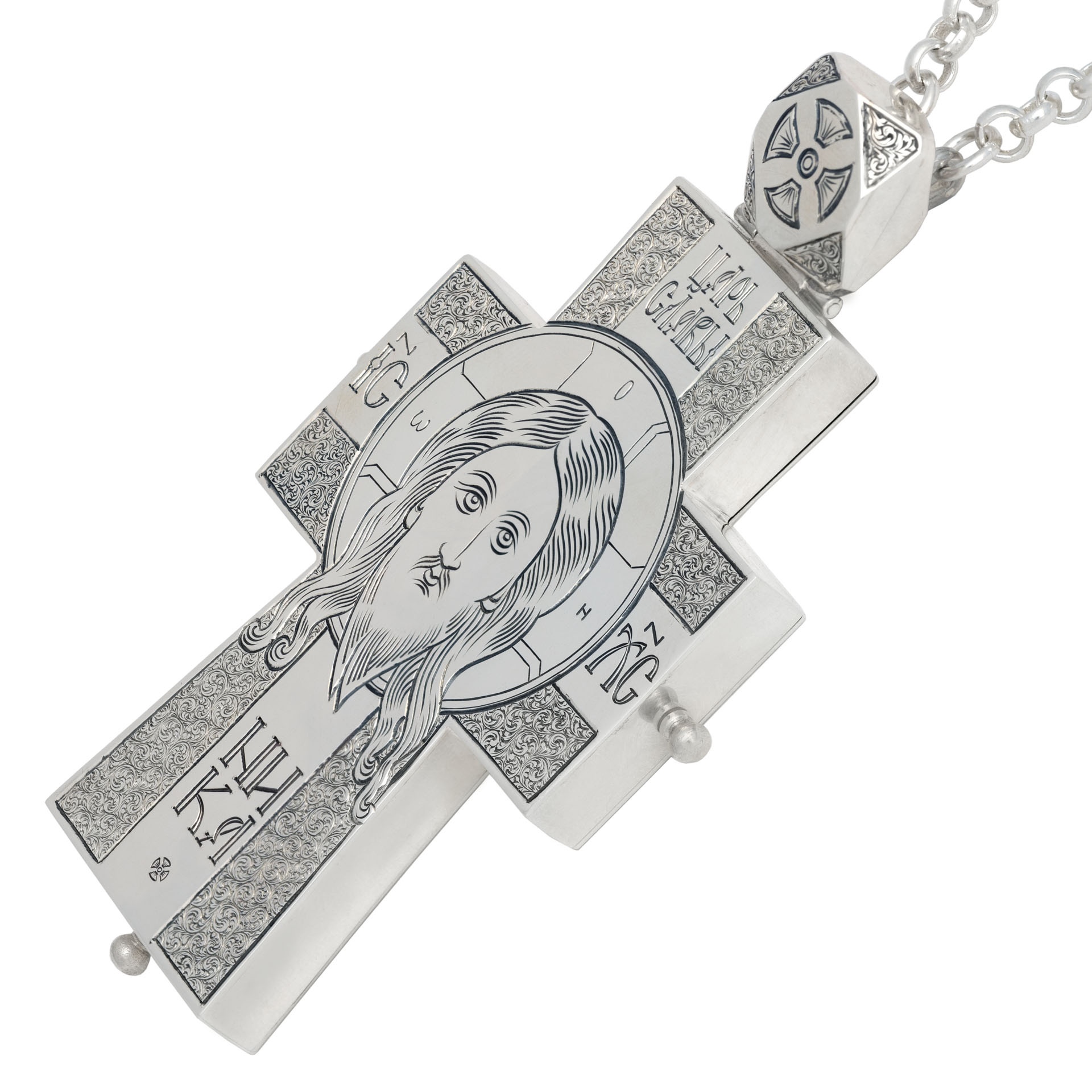 Крест архиерейский №1554 мощевик гравировка серебро (УИН)