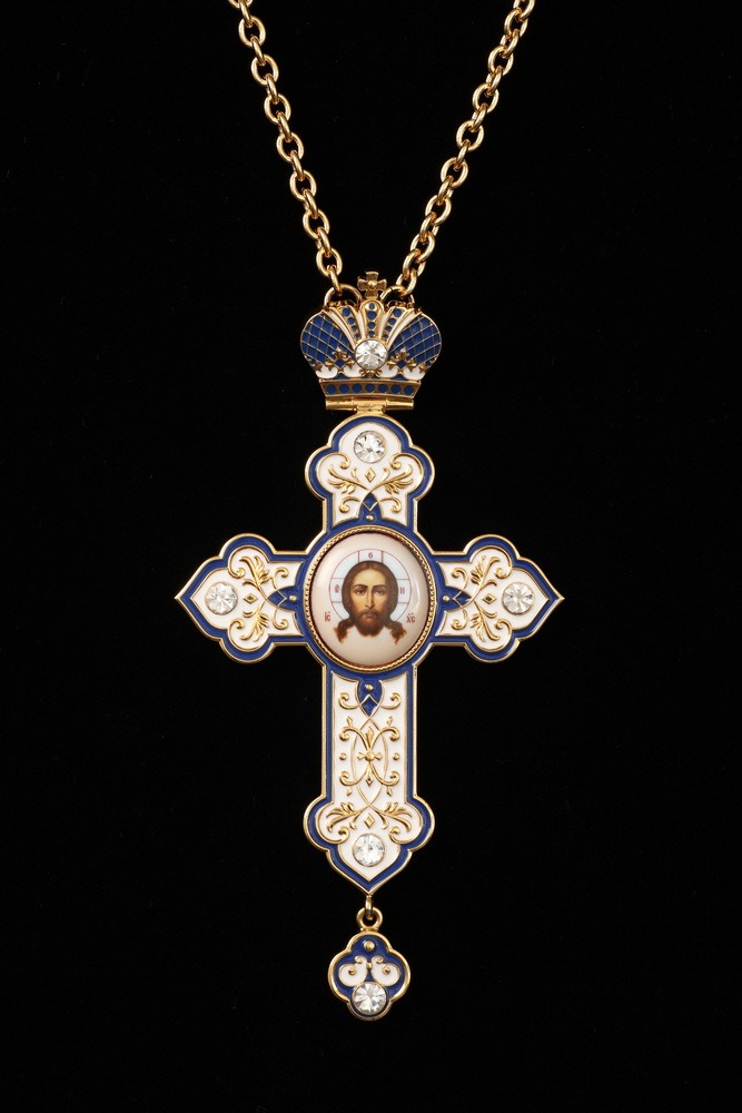 Крест архиерейский №187 штампованный, эмаль, деколь / золочение