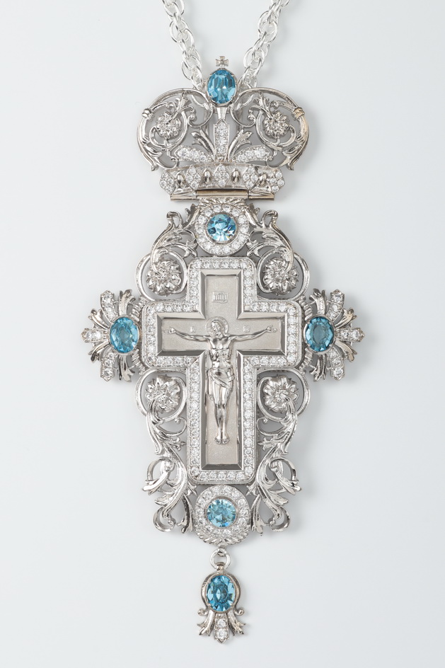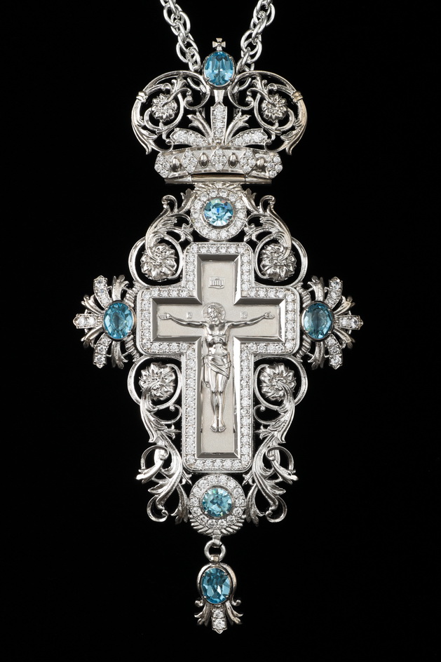 Крест архиерейский №189 / Фианиты литьевое распятие / серебрение