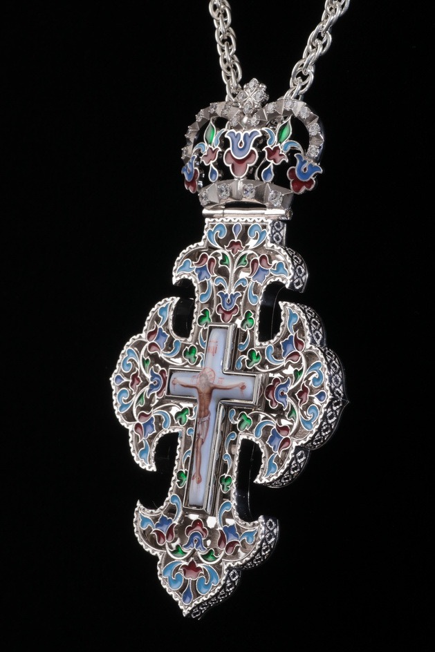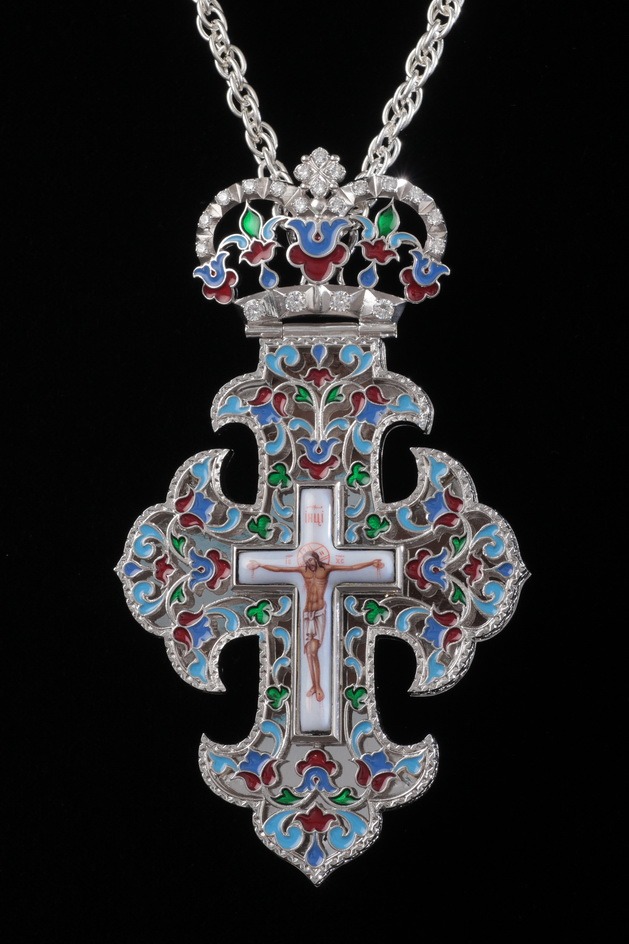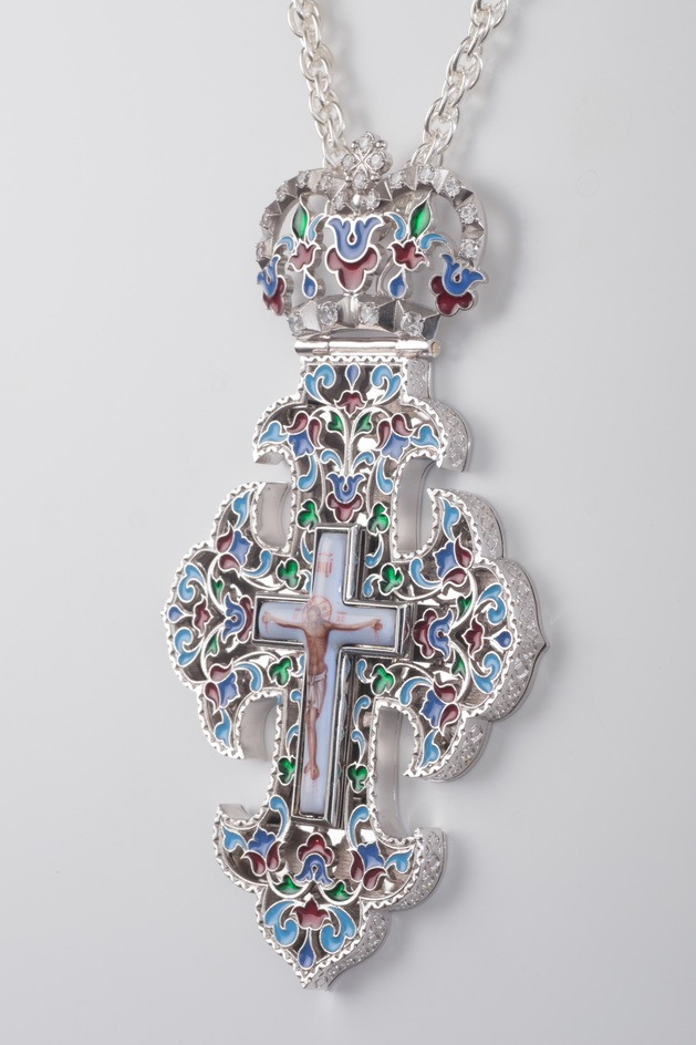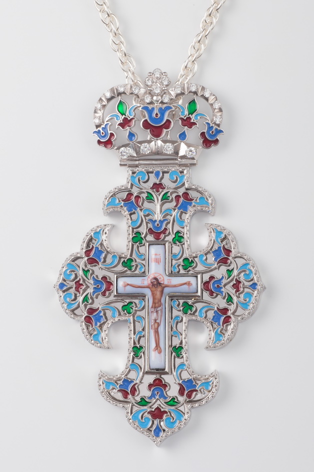 Крест архиерейский №190 / Фианиты эмаль / серебрение