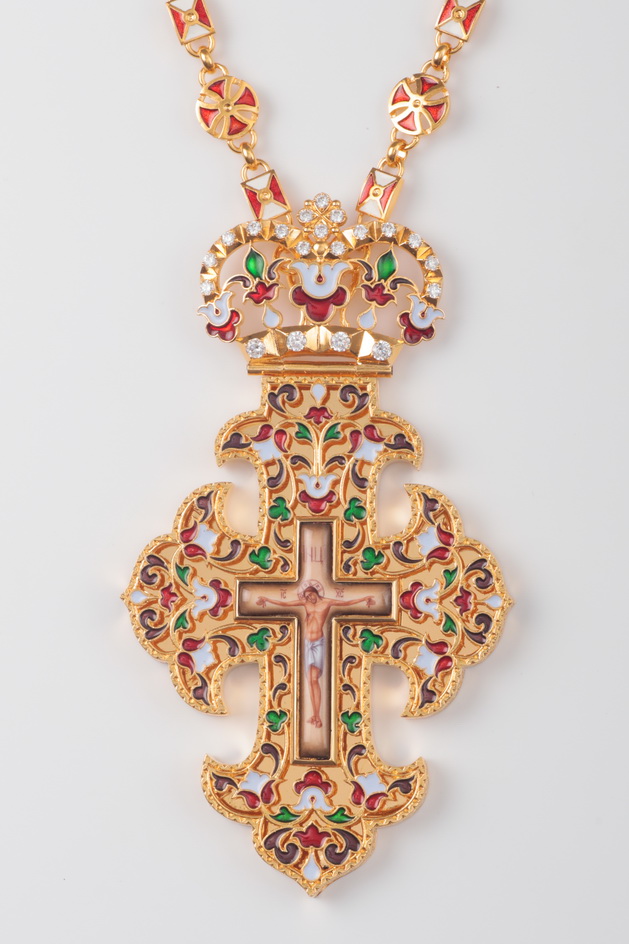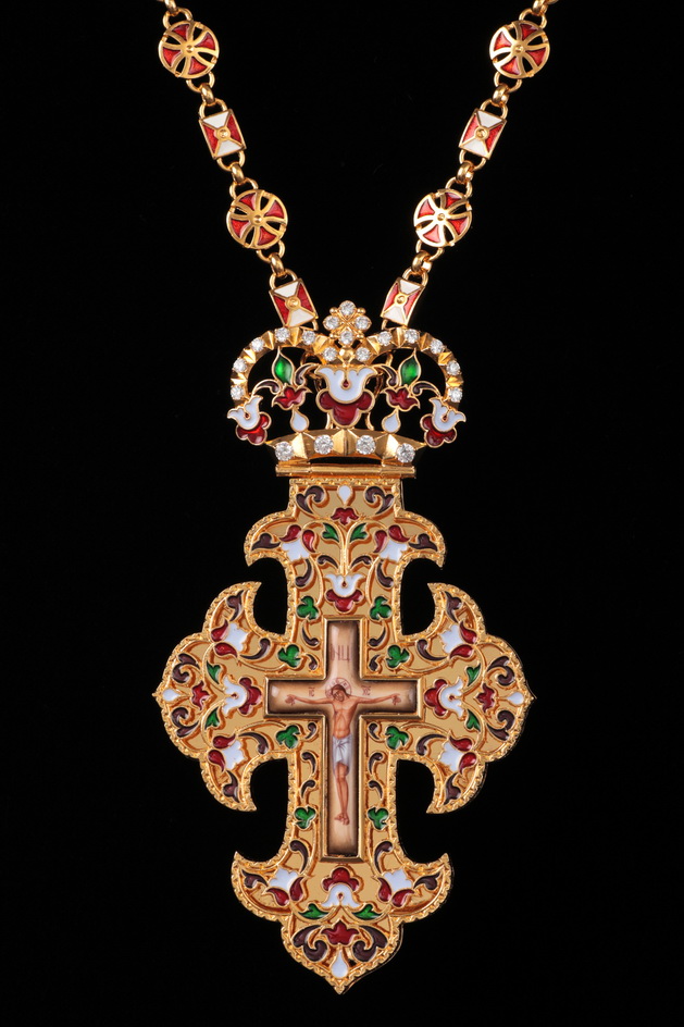 Крест архиерейский №190 / Фианиты эмаль / золочение