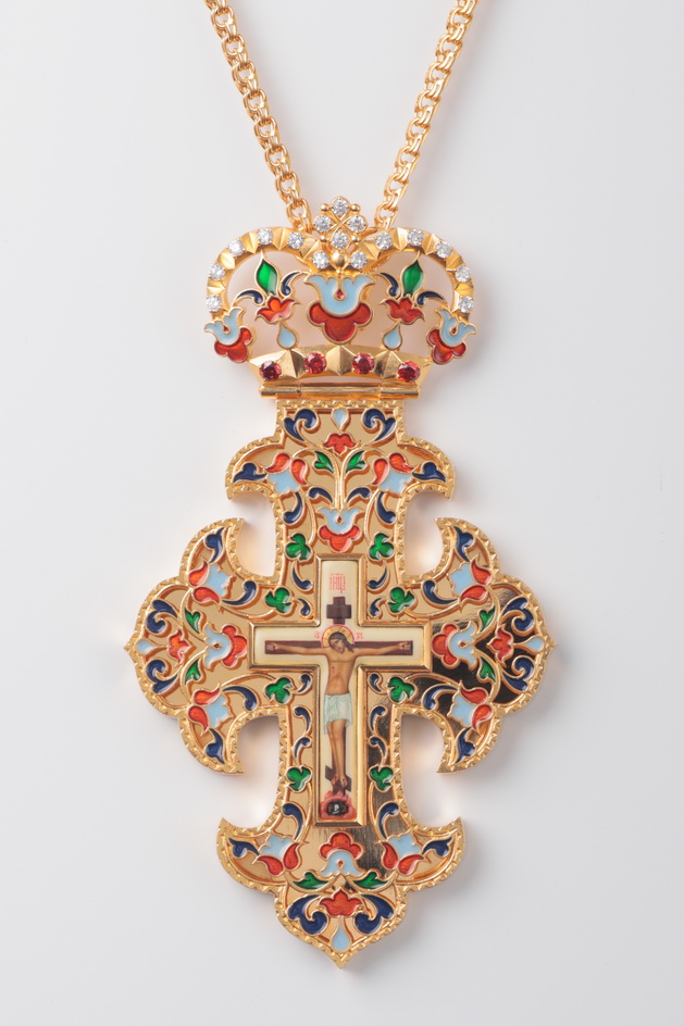 Крест архиерейский №190 / Фианиты / золочение / серебрo эмаль (УИН)